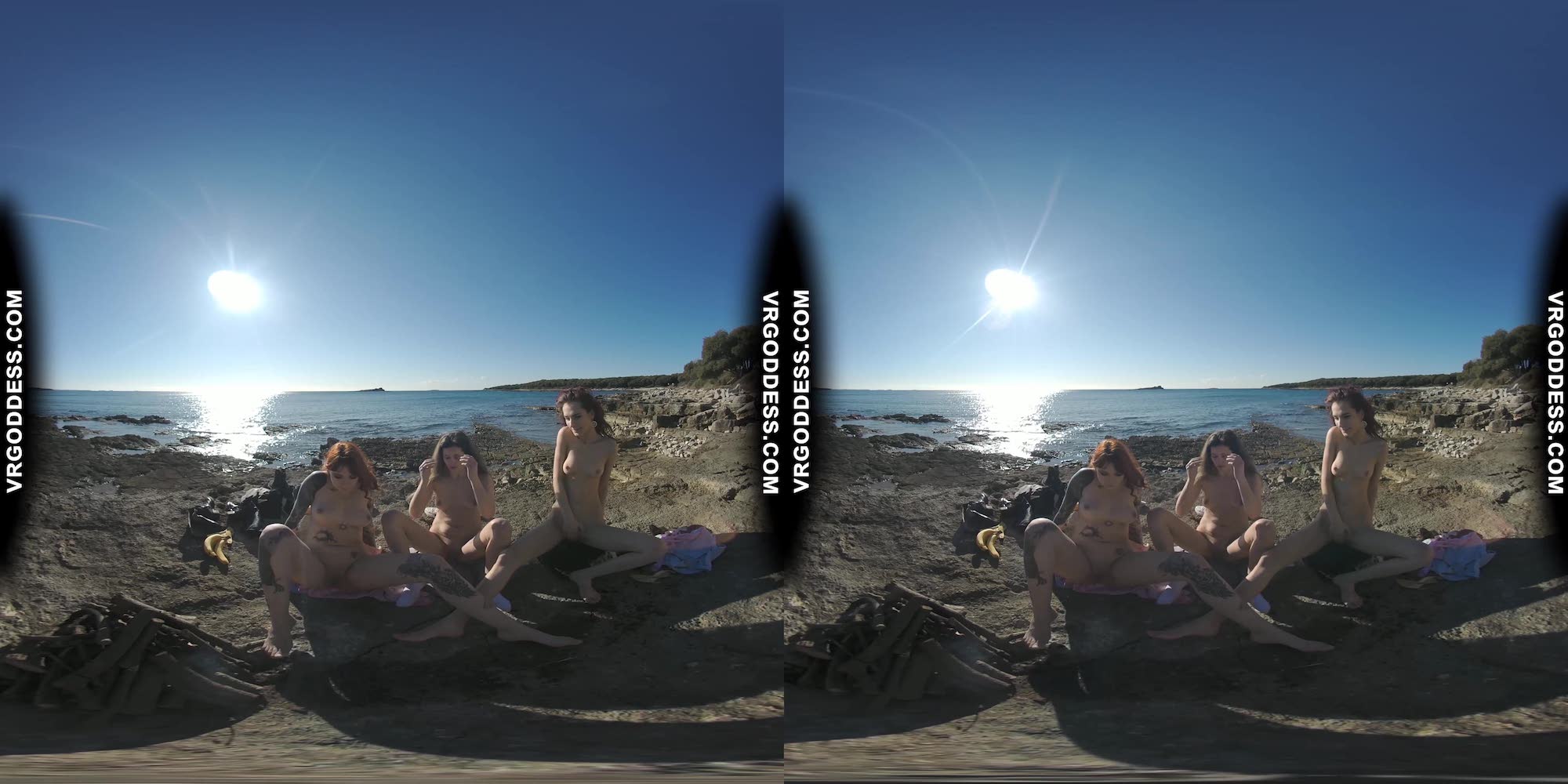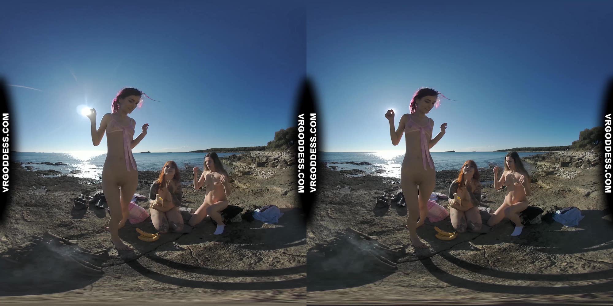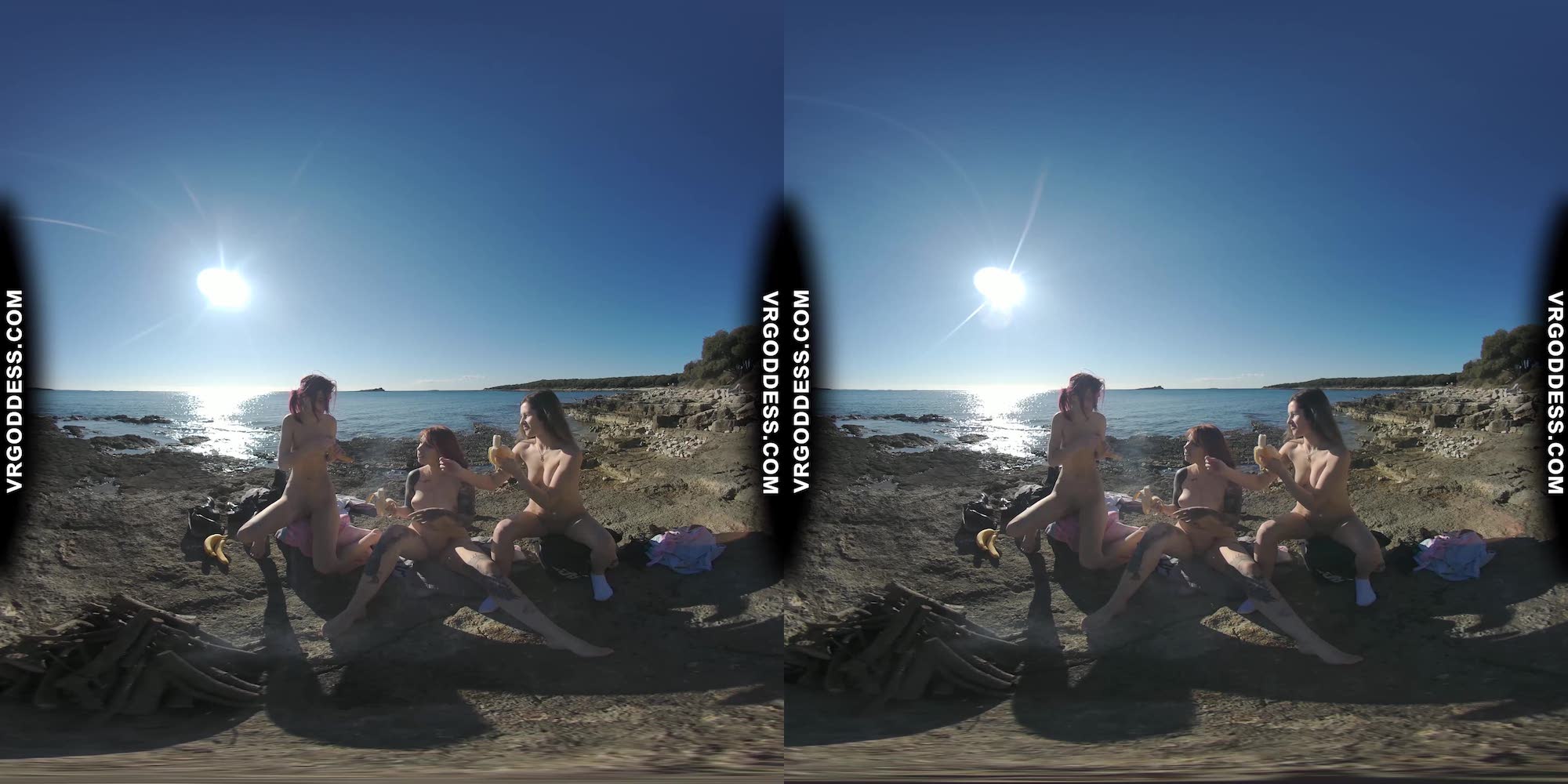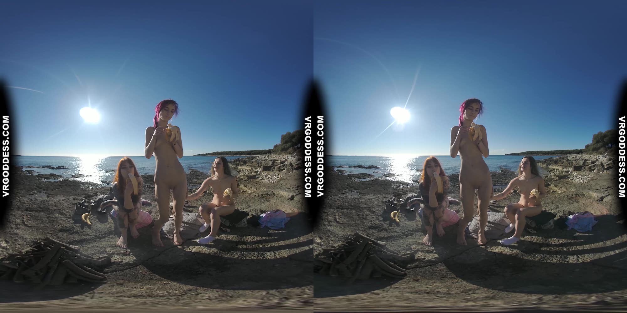 3 Hot Girls Getting Naked On Beach During Winter Making Fire Eating Bananas Dancing