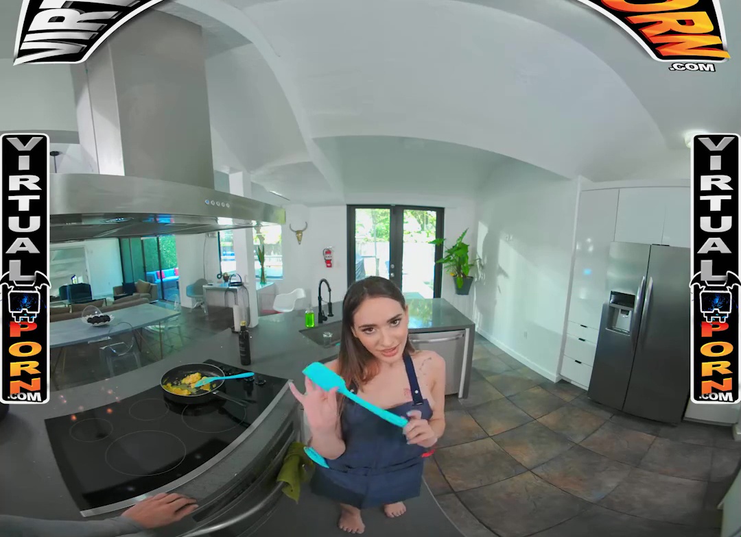 Your girl tried to surprise you with breakfast. But you caught her in the act. But luckily for you, that's not all she has in store. Instead, she takes the spatula and starts deep throating it like she is hungry for your dick. She gets so hot she starts fucking herself with the spatula. She begs to be oiled up, so you oblige and drench her in oil. She loves the slick feeling of your hands rubbing every crevasse for her body. Finally, she gets down to suck your cock; you're in heaven. But, she wants more; she wants to fuck. She starts fucking you in the living room. She rides your cock so good. You're about to, but you continue fuking her pussy. You nut all over her face.
