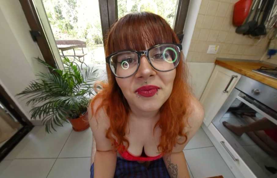 Black Cat wants to play a game with you. The ALT hottie lets you blindfold her and feed her different fruits and veggies to see if she can identify them. After a carrot and a cucumber, you put your dick in her mouth. She knows exactly what to do with it, taking your shaft down her throat. Taking the blindfold off, she leads you to her bed, gets on top, and lets you titty fuck her before the horny redhead gets on top and lets her big tits bounce as she rides you like a slutty cowgirl.
