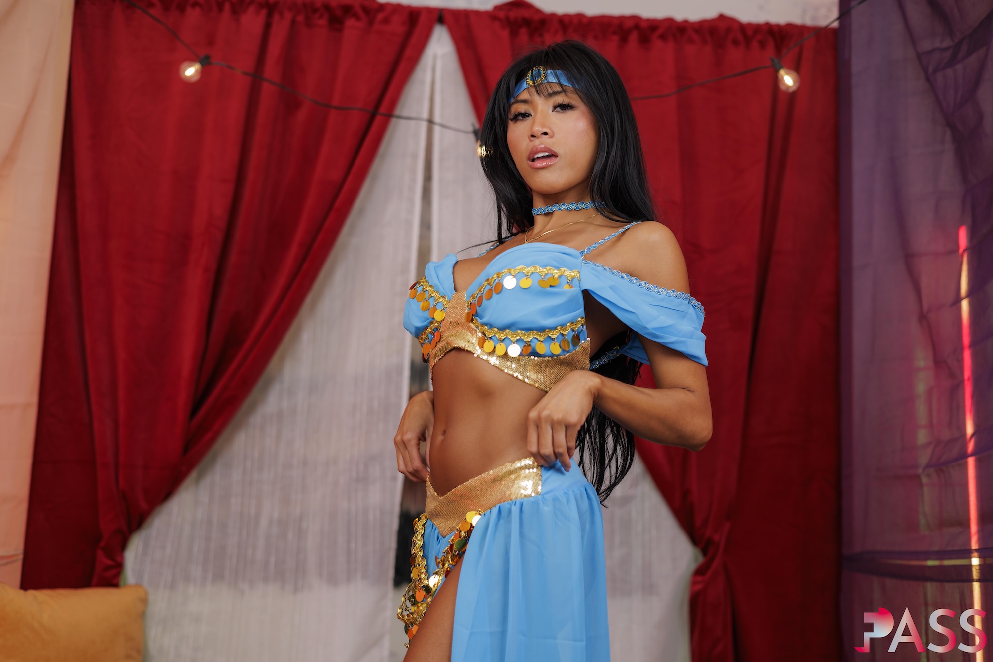 Veiled Allure Emerges: Ember Snow's Mystical Arrival in Asian VR Porn. Your Jeddah business wraps early, leaving you restless until a discreet contact arranges a private unwind in a secluded villa, guiding you to a low velvet mattress amid plush pillows, where dim lights cast shadows and floral scents mingle with unfamiliar spices, soft pulsing music enveloping the air like a hypnotic veil—until the heavy curtain parts, revealing Ember Snow, a sexy Asian MILF with long black hair cascading like midnight silk, big tits straining against sheer fabric, and her fit MILF body exuding sultry poise, her round smackable ass swaying as she approaches with enigmatic grace. In this luxurious 8K VR porn fantasy from FuckPassVR, anticipation thickens like the scented haze; you feel the warmth of her nearness as she kneels close, hear her breathy whispers blending with the atmospheric rhythms, while her shaved pussy hints through translucent layers, transforming cultural respite into a forbidden symphony of seduction.
