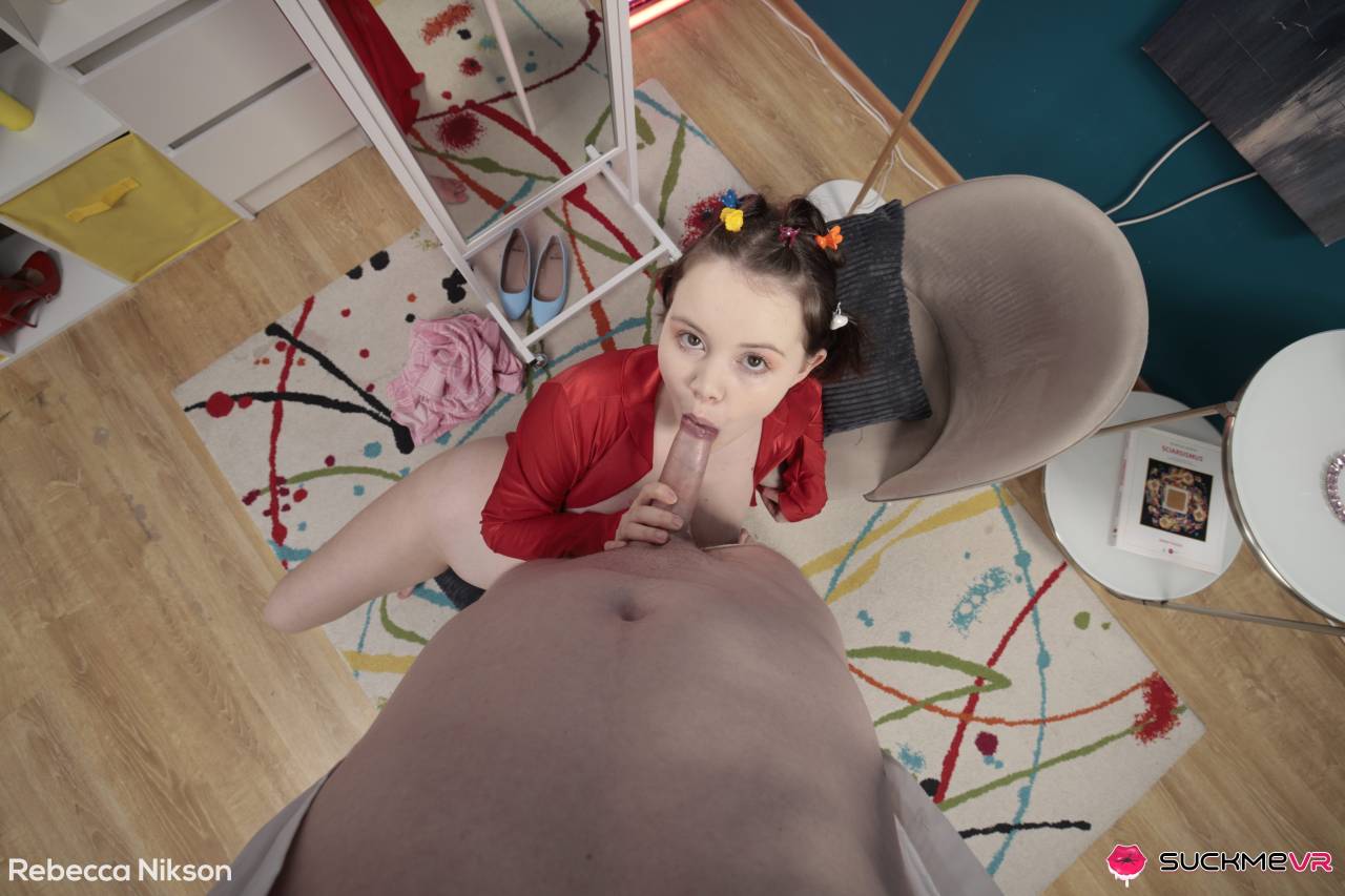It’s so nice to have Rebecca Nikson again on our site already. Everyone is so in love with her, both on the set and at home behind the screen. And there’s nothing not to love about her. She is the ideal nubile babe for the men who like them young and thick, too. Her body is so pristine and fertile. And she also has an adorable face that every man wants looking up at him when she is on her knees. In this new scene, she starts alone in front of the mirror, and she teases the camera in such a nice way, showing off her gorgeous titties and that sexy bubble butt of hers. Once she is naked, she moves her attention to our friend who got to perform with her. Or better said, she moves attention to his hard cock, which she starts to suck and worship like there’s no tomorrow. She might be young, but she has some amazing cock sucking skills. After she made that cock wet and hard, she bent over to receive it in her tight and wet hole. It’s a bit big for her pussy. And even though it barely fits, she insists on taking it all inside herself. After a while, when she could get it all, she asked our guy to get on the floor so that she could ride his cock. It’s so nice to see that big white booty riding cock in reverse cowgirl. And it is also nice when she turns around and rides while playing with her clit, because you get to see those marvelous titties jiggling like crazy. And after all the fun, she jerks off that cock all over her massive titties.