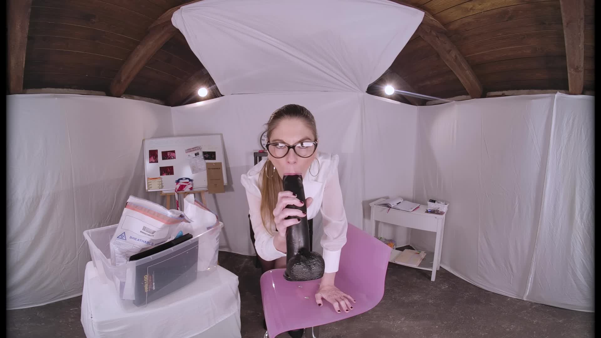 Alice is a forensic specialist who, like every day, has to analyze materials and objects. She's a beautiful scientist, or rather, in this case, a MILF scientist slut. And yes, because while waiting for her colleague to arrive to continue with the forensic work, she discovers two large rubber cocks inside a box, 12-inch dildos ready to be ANALized. Alice doesn't have much time, so she first tries to taste them with her mouth, giving a nice blowjob, and then she sticks the biggest one in her asshole. As you can see, her holes are really fucked. Don't miss this mature slut fucking her ass with these huge dildos. This could just be the beginning of a new series with Alice Maze, the forensic specialist...