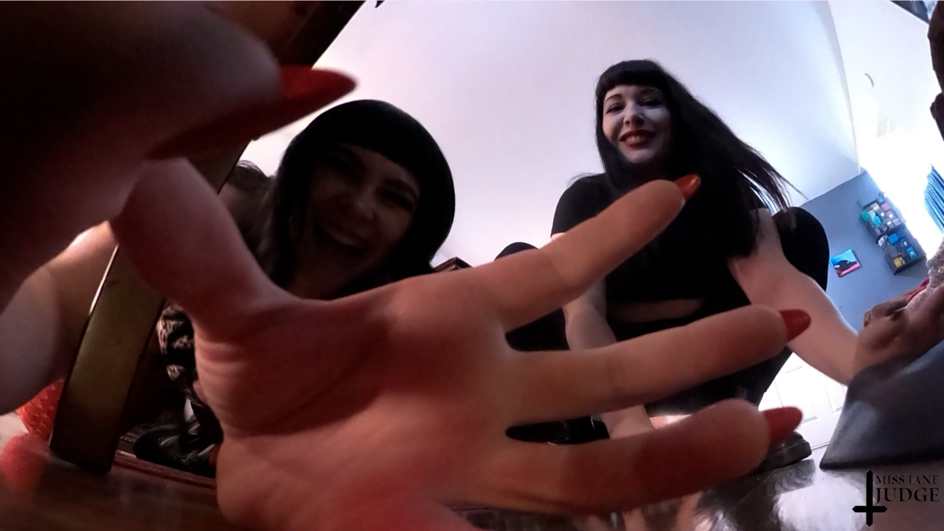 VR 360 – featuring Lita Lecherous and Jane Judge, an unaware giantess clip with hungry giant women eating tinies like bugs, stomping, hunting, belly rubbing and digesting their food on Science Friction. Life after the Shrinkocalypse that miniaturized all the men has been hard- after half the population disappeared overnight, it’s been hard to find enough food! In this post apocalyptic fantasy Jane and Lita are reading a survival book- it recommends finding a good source of protein, like bugs. OK, they’ll give a quick look around… and they find you! A tiny little bug- no, a tiny man! You look juicy and meaty though, and they’re so hungry… Dreading the taste, Jane goes in for a bite. It’s actually really good! Lita tastes you next, and the two giantesses take turns tearing you apart as they feast. You’re so good they search for another tiny and another, eating every one they can get their hands on! Dangling above their open mouths, digesting in their big bellies, and being swallowed whole is the fate for any tiny unlucky enough to be hiding in this room. Finally satisfied, they rub their bellies and talk about how good it feels eating your delicious meat. They’ll be back for dinner later… Featuring Lita Lecherous and Jane Judge, edited by RickyxxxRails