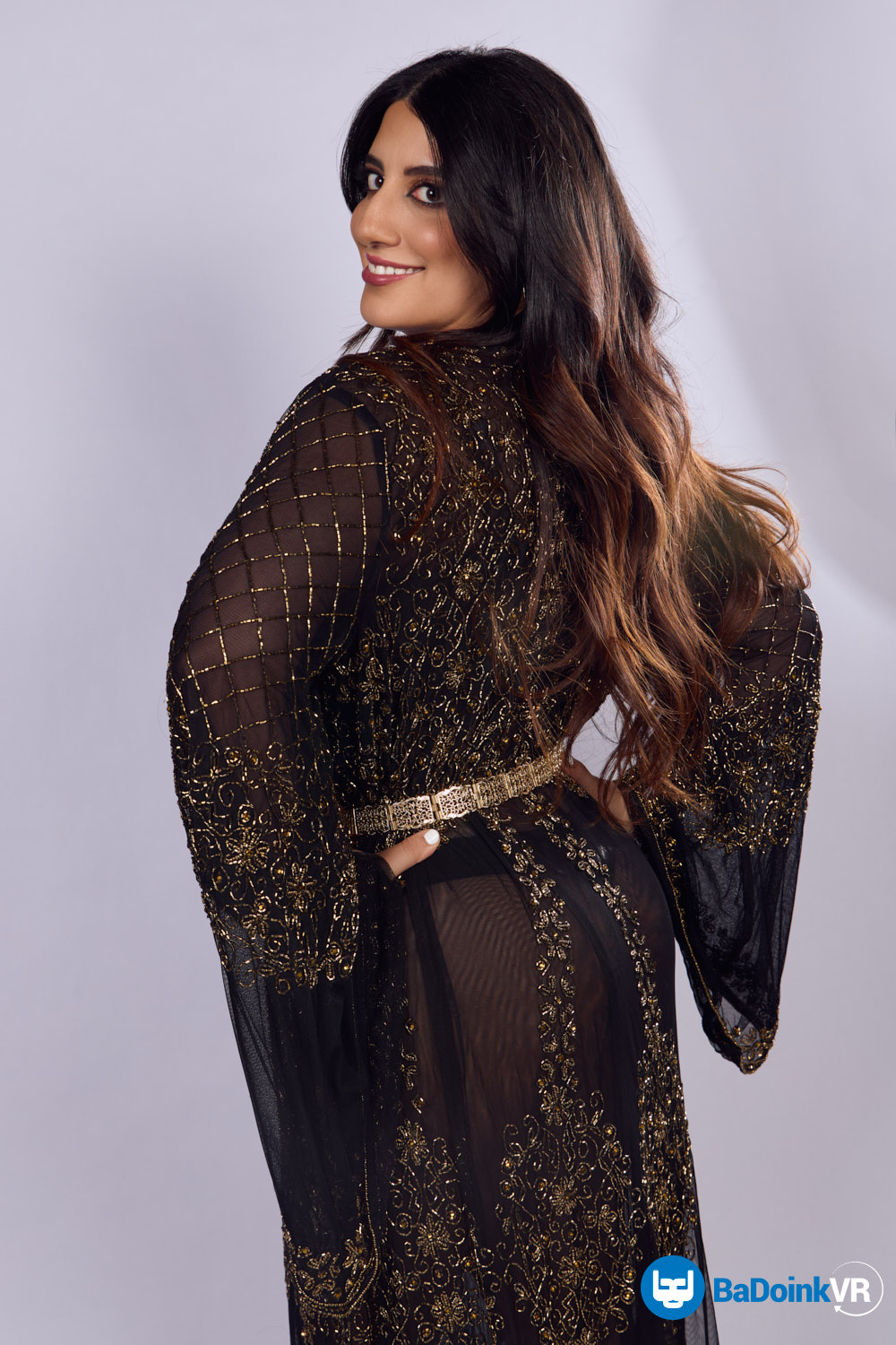 Nothing could have prepared you for this trip to the Gulf! You've made many business trips to see wealthy benefactors over there, but this time things feel different. When you saw the name Sarah on the private investor invitation to the 3D rendering farm and A.I. analysis tool HQ, you thought you'd be meeting a nerdy data engineer. Walking in to meet Sarah Arabic, you're absolutely blown away by her presence, and by those huge breasts. 36H to be exact! Things quickly turns to cutting edge tech, in particular porn. You're getting a very strong vibe from Sarah and it looks like the team you were also scheduled to meet is going to be late, giving you two around an hour to get up close and sexual. She's wetter than an oasis in the desert and hotter than the equator in July. Get ready to experience this big titty babe like never before in fully immersive VR porn here for her BaDoinkVR debut. It's time to make an explosive deal with unbelievable stunner, Sarah Arabic!