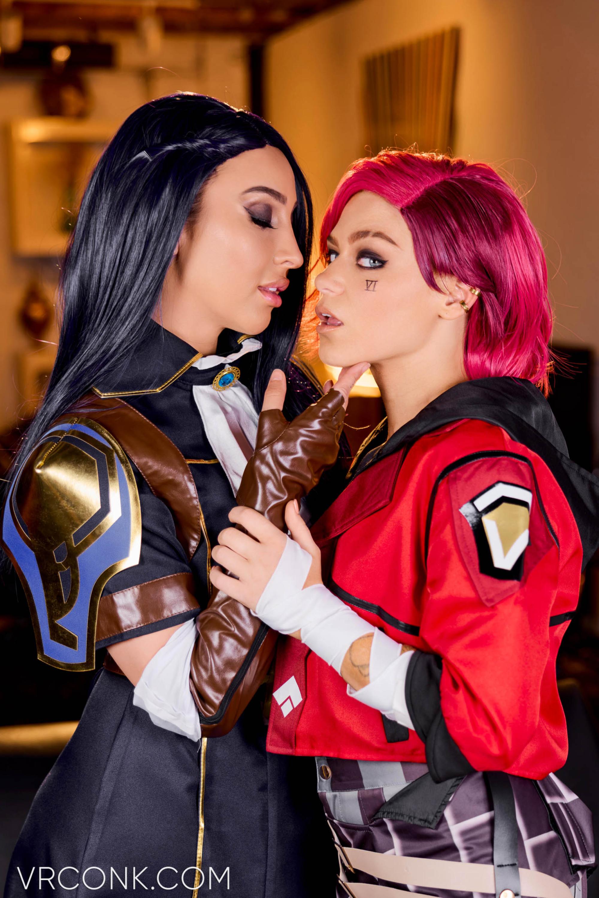 Did you think that the alluring dreams you have about your favorite heroines would stay only in your head? That would probably be the case if there weren’t cosplay VR porn movies from VR Conk. Luckily, they exist in even up to 8K UHD to take care of your fantasies and bring them as close to reality as possible. And today we got you covered with even two smoking-hot girls coming from the steampunk world of one of the Netflix animated series. Welcome to Arcane: Vi & Caitlyn (A Porn Parody), a new TV show VR cosplay porn video that gets you in the middle of slow-burning and ambiguous interaction between Vi (Katerina Deville VR pornstar)—a tough and impulsive enforcer and Caitlyn (Melissa Stratton VR pornmodel)—skilled and justice seeking daughter of wealthy house of Kiramman. They are dedicated to uncovering Silco’s empire in the undercity, and now they’re discussing Vi’s potential recruitment into the forces. These two playful babes are trying to figure out if she should accept the call. Upon wearing your VR goggles, you’ll find yourself in the company of these ladies and witness their love for one another becoming apparent. The moment will even draw them into a kiss inside this parody VR cosplay porn scene. That's when they’ll realize—you’re always there to get them through the toughest situations. And you’d probably like to have a taste of this romance, wouldn't you? Well, you deserved it, and these two hot vixens wouldn’t be opposed to helping you out as a favor for always being there. Just lie down for them and let them draw you into this threesome VR cosplay porn fantasy. After you bang them hard, they’d surely want to keep you as their favorite lover boy. So you can go back and have fun with this tempting duo whenever you wish!