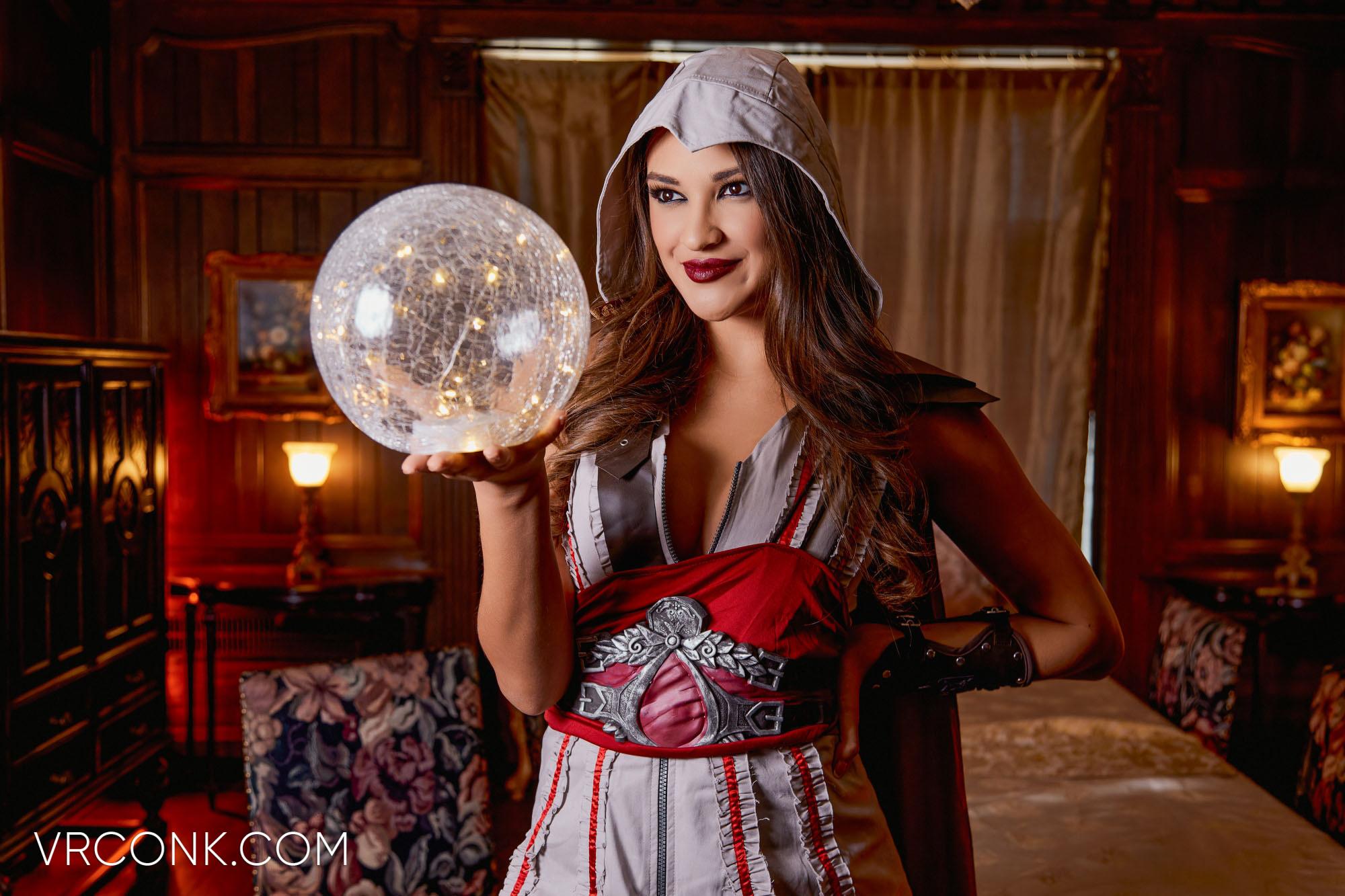 Welcome to VR Conk's latest video game VR cosplay porn scene based on one of the most iconic series in the history of gaming! Assassin's Creed (A Porn Parody) is our latest approach to make you all feel like skilled assassins from the secret organization standing up for the world and fighting the templars for decades. Prepare your VR goggles and begin your cosplay VR porn journey with us. By the way, what do you think, many years ago, could the creators of the original release from the series possibly imagine that one day there would be an invention of VR headsets, which more and more resemble the Animus? That's interesting. Inside this teen VR cosplay porn movie, you're not only going to become an advanced hired gun from the order but also a master of a promising female assassin's apprentice. She's obsessed with you, her mentor, and you have just completed one of the most meaningful sweeps in your history. You've acquired the crystal ball capable of telling the future! Even though you were supposed to take it to your master from the order of the assassins, this Latina VR porn model disagrees with that decision. Instead, she tries to steal it to read her faith and find out what to do. Luckily for you, though, the ball reveals to her the future of having sex with her mentor – and even though she disagrees with that at the beginning, after giving it a second thought, she realizes that's what she's always wanted. Now she comes to you, telling you the faith she's learned and explaining that you can't ignore the images she grasped in the ball. Will you respect your destiny and follow your apprentice's lead to make it happen? Well, this pretty much means that you're about to bang the sexy pussy of Gizelle Blanco VR porn star, so why the hell not?!