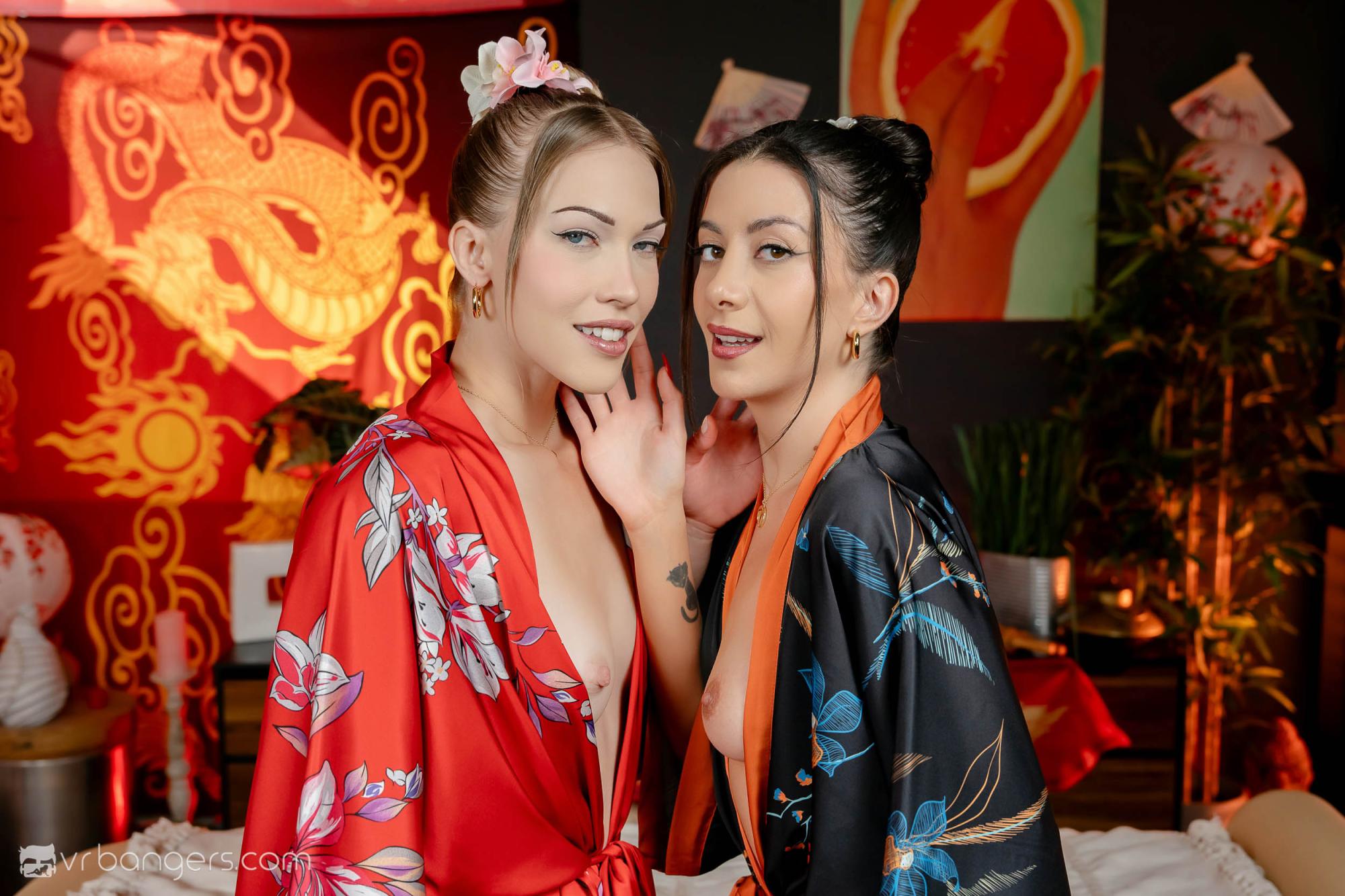 There are countless places in Bangkok where you can get a Thai massage—but why book a flight when you can experience something even more indulgent with VR Bangers? Our latest VR porn movie takes that timeless relaxation fantasy and turns up the heat. Bangcock Spa is where serenity meets seduction, and every touch brings luxury, warmth, and connection. No need to pack a suitcase—just slip on your VR goggles and surrender! In this threesome VR porn fantasy, you return to your favorite spa—a place where you’re treated like an old friend—and every visit feels like coming home. This time, you’ll be greeted by your trusted therapist (Natalie Brooks VR pornstar), and introduced to her alluring new trainee (Diana Grace VR pornmodel). Together, they’ll make sure your “session” is one you’ll never forget. Natalie is a very confident and experienced therapist—she knows you require special attention, since you always leave a generous tip if you're treated the right way. She whispers about it to Diana, who is shy but eager to impress. And she’ll follow her colleague’s lead as they begin the massage together. They work slowly at the beginning of this babe VR porn scene, overlapping strokes, matching rhythm—using your favorite oil that gleams softly under the golden light. Furthermore, once they finish warming up, it’s time they show you why this is actually called the Bangcock Experience. Natalie gives Diana a knowing look—she nods, and her hands continue gliding in the rhythm as the music swells slightly. But enough talk—we’ve drawn you in, and now it’s time to live it. Immerse yourself in the pure sensation of this massage VR porn video—in 8K UHD. After all, these two naughty vixens aren’t known for their patience!