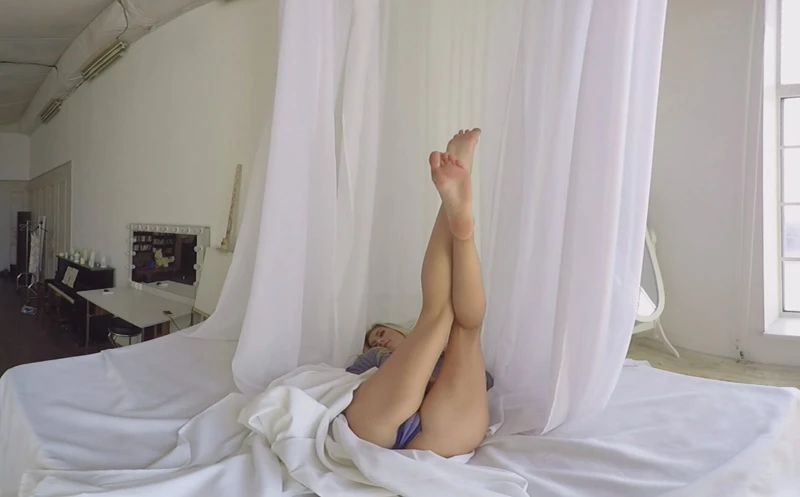When this blonde hottie woke up in the morning she sat in her bed wearing just a shirt and panties and stretched out. She took her shirt off and showed off her tight, fit body and big tits as she moved around on the bed then she stripped off the panties and writhed around on the bed letting the soft, silky sheets intertwine with her body and rub against her soft skin, turning her on with the softest touch.
