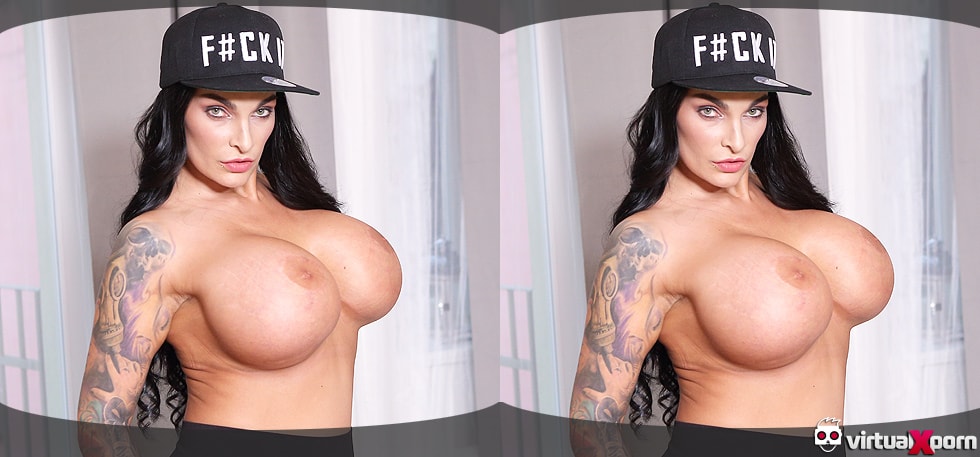 German Milf Sandra Sturm is so horny that she gets naked, fondles her extreme huge silicon boobs and begins masturbating until she gets the needed climax, right in front of you!
