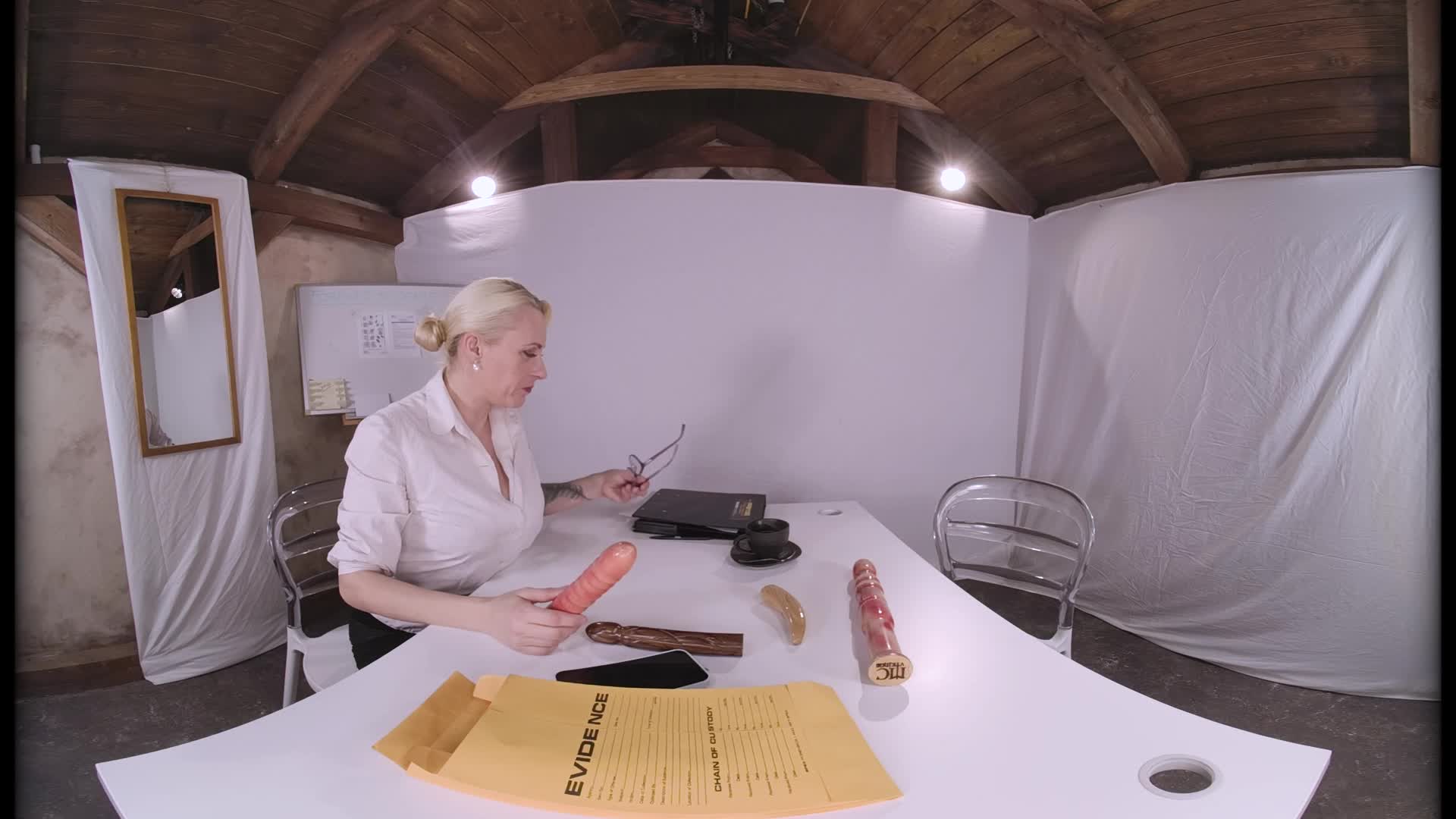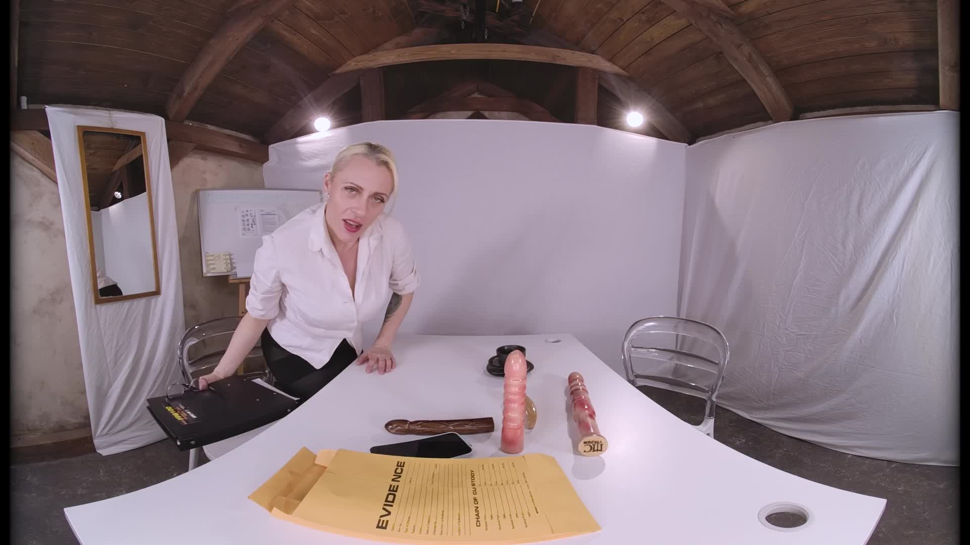 Here we are with a new episode of this magnificent forensic police series. The protagonist of this new episode is Brittany Bardot, who must analyze the findings and evidence of a hot new case! To best analyze the large sex toys of various sizes and materials, she uses a very special scientific method: fucking her pussy and sucking these large dildos to check if the DNA test works. She's truly a very slutty mature police officer who puts all her expertise into solving this new case and filling all the objects thoroughly with her pussy juice. WeAreCrazy always takes you beyond your expectations; a new VR Porn episode of this series is ready for you to enjoy!