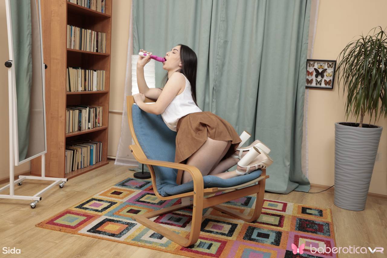 We have a new gorgeous brunette on the site. Her name is Sida, and even though she hides her body in an elegant outfit, she has some curves that will mesmerize you. But you can see that she’s a snack even before she shows off her features. She has a pretty face. But more importantly, she has big, meaty lips that were made for sucking. That cute face would look so sexy when she has her meaty lips wrapped around your cock. She shows her intentions from the first moments of the video, because she starts her performance holding the dildo that she’ll use on herself. The first thing you’ll get to see are her sexy black panties once she takes off her skirt. But you’ll also be amazed by her juicy, wide hips and that stunning bubble butt. She keeps what’s best for later and removes her panties to tease us with her shaved and tiny pussy. She puts that pink dildo in her pussy and everything about her changes. From the cute and innocent-looking girl, she turns into a horny slut who just wants to cum. As she turns herself on with that toy, she swiftly lifts her bra up to show off some amazing titties that will make you drool. Her boobs are just perfect. They are round and firm, with some amazing nipples onto which you could suck all night. The closer she gets to her orgasm, the kinkier and sluttier she becomes. We captured the beauty of her body from many angles. And the fact that she kept her high heels on throughout the video will surely entertain so many of you who are into fooware kinks. She fucks herself deeply and passionately, giving herself an intense orgasm. After the orgasm, she made sure to show off her beauty a bit more.