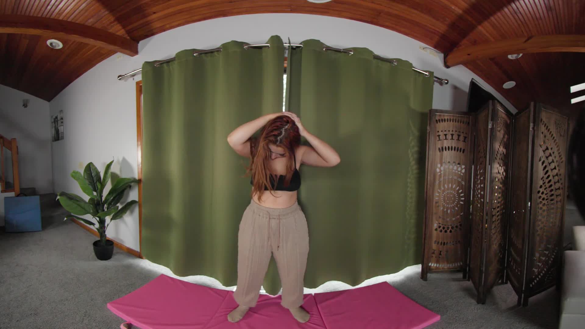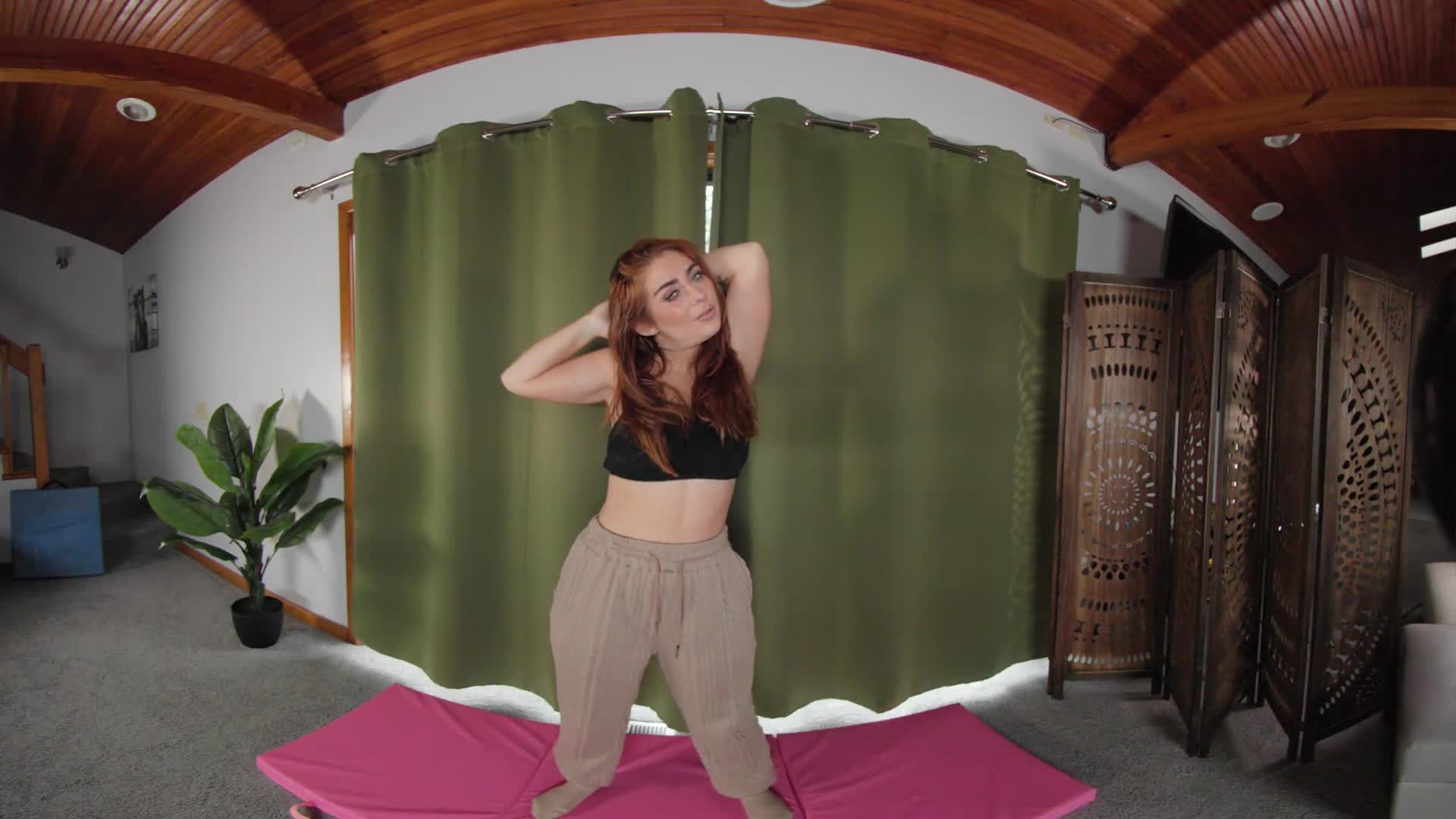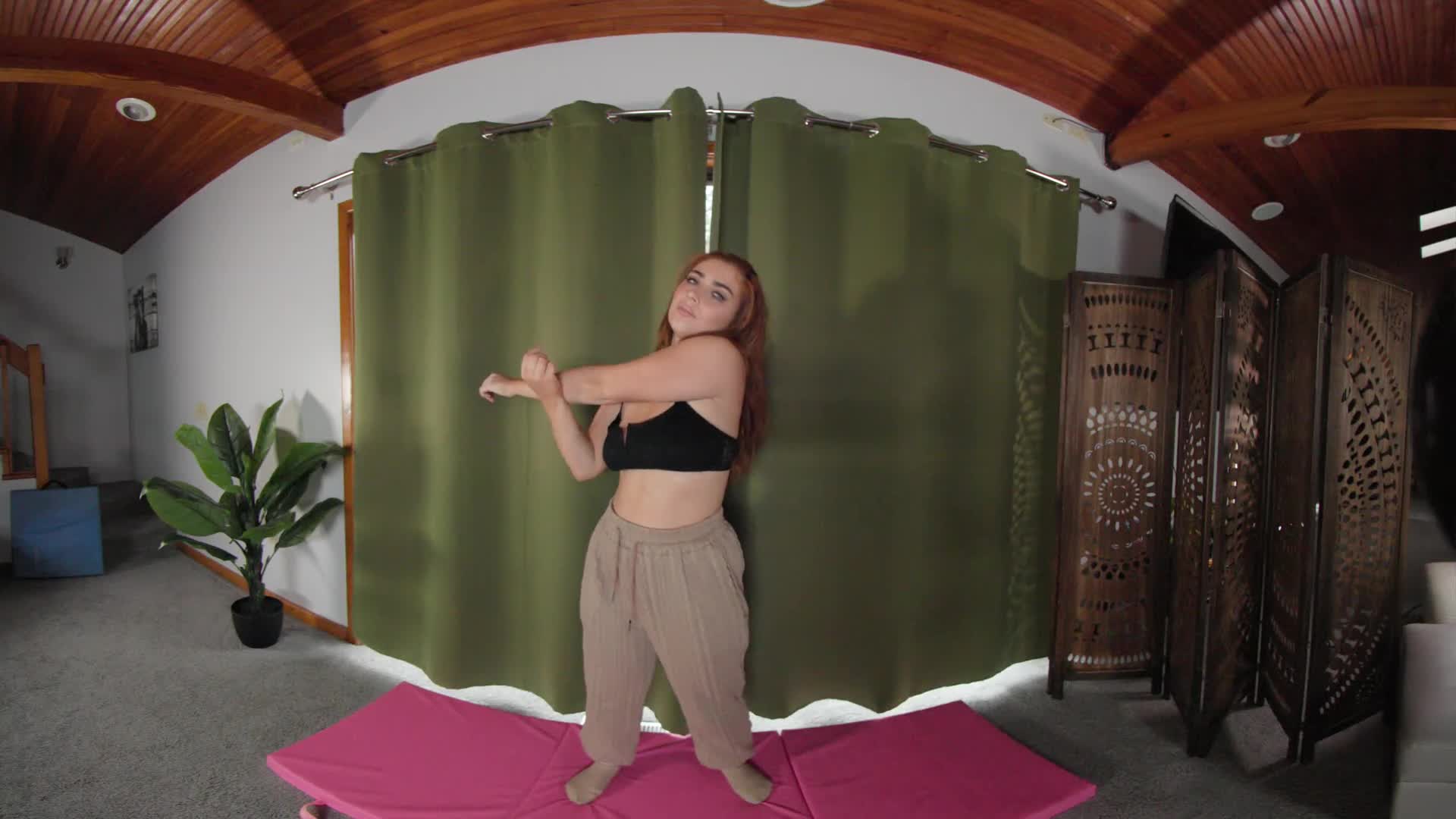Busty Redhead Kira Fox’s Naked Yoga and Masturbation in VR