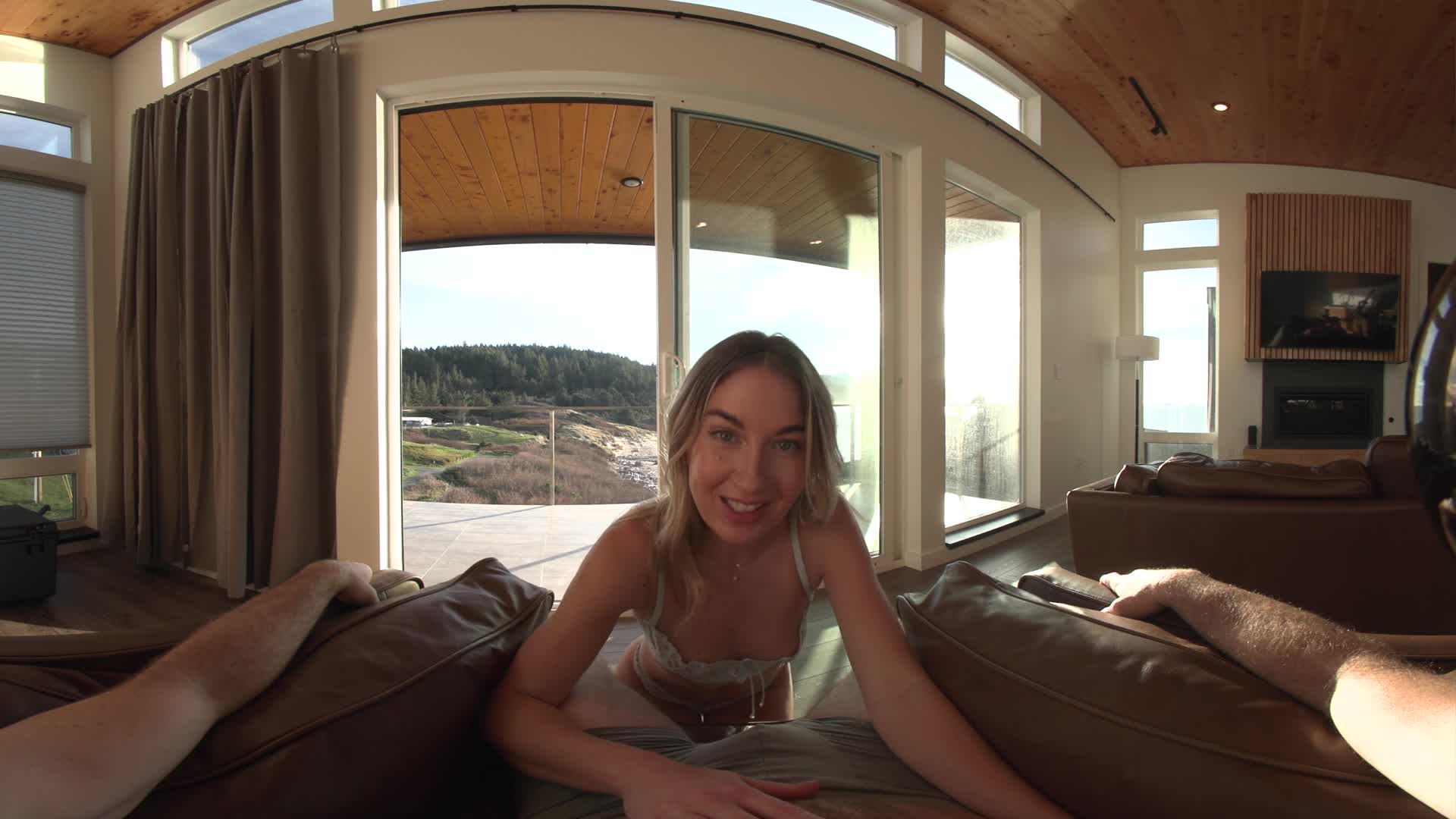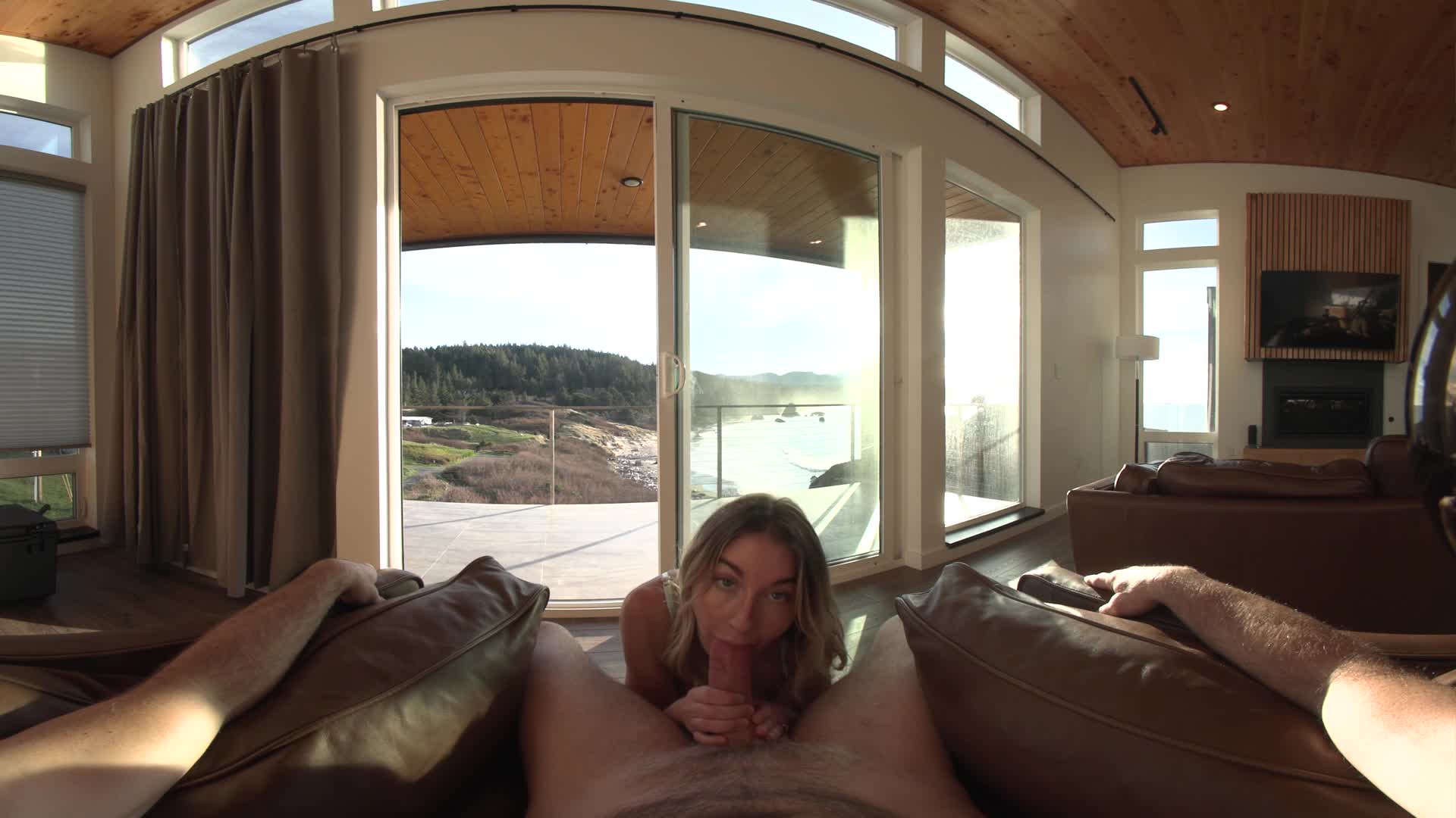 Silver surprised me with a getaway to the Oregon coast, so we spent the entire weekend laying in bed and making love. The morning we were to leave, I found Silver sitting in a chair in the living room and decided to express my gratitude by milking his morningwood.