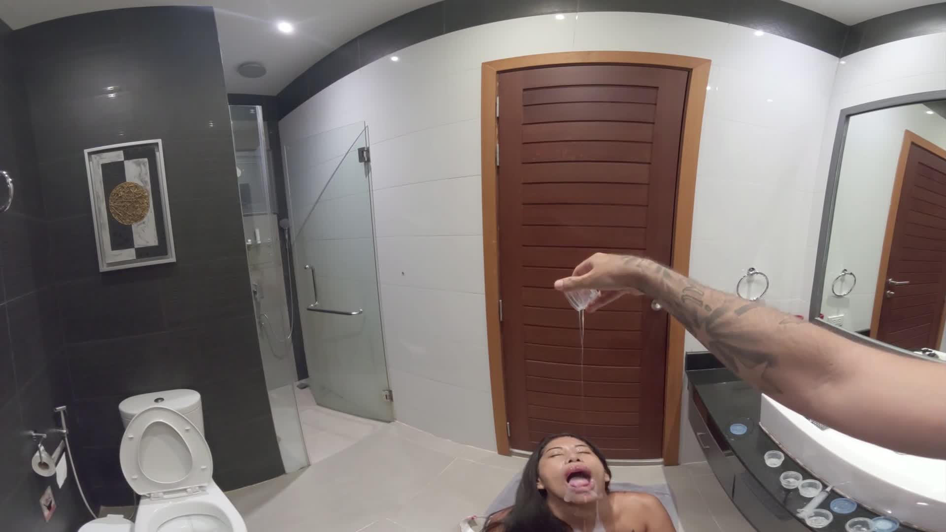 You're at the Sperm Bank giving a donation, when all of a sudden one of the nurses comes in! Turns out she's addicted to cum and she steals the samples for herself! She plays with several tubs of jizz, covering herself in cum while sucking your dick, you fuck her right there in the bathroom and she makes you give her your cum also until she in drowning in it all!