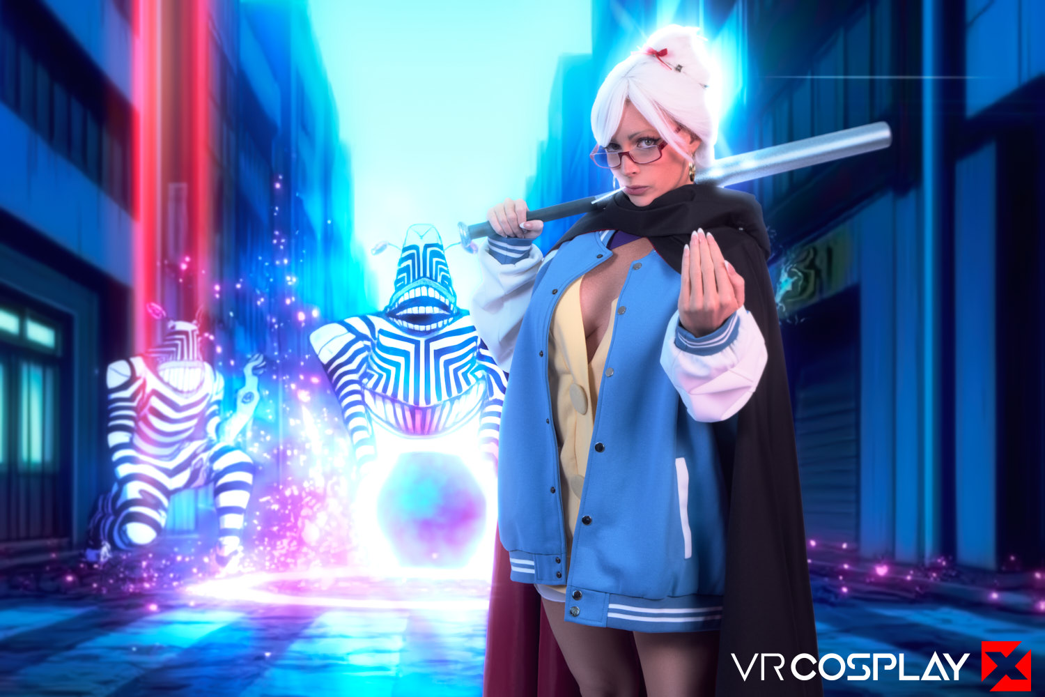A calm, confident swagger. Red glasses perched on the bridge of her perky nose and white hair tied up in a loose bun while she wields a big, hard baseball bat and lets her cigarette hang from her lips. She's got long, silky, smooth legs and she's one hell of a big tits VR babe - Danielle Renae as Seiko is about to make this Da Da Dan cosplay VR porn an unforgettable fantasy. This spirit medium is the kinda trouble you gotta earn, and she's here for one of two things: one, a ghost that needs to be dealt with swiftly, or two a date with lucky, lucky you! Tonight she's ready for both, I mean, when is she not?! She's getting very wet down there and Seiko needs you to whip out your thing so she can tell you to PLAY BALL!! Once she removes that long cardigan you're not going to be able to resist a single one of her moves. Firm up your lower abs, get your chi out, and give Danielle Renae as Seiko the otherworldly relief she craves!