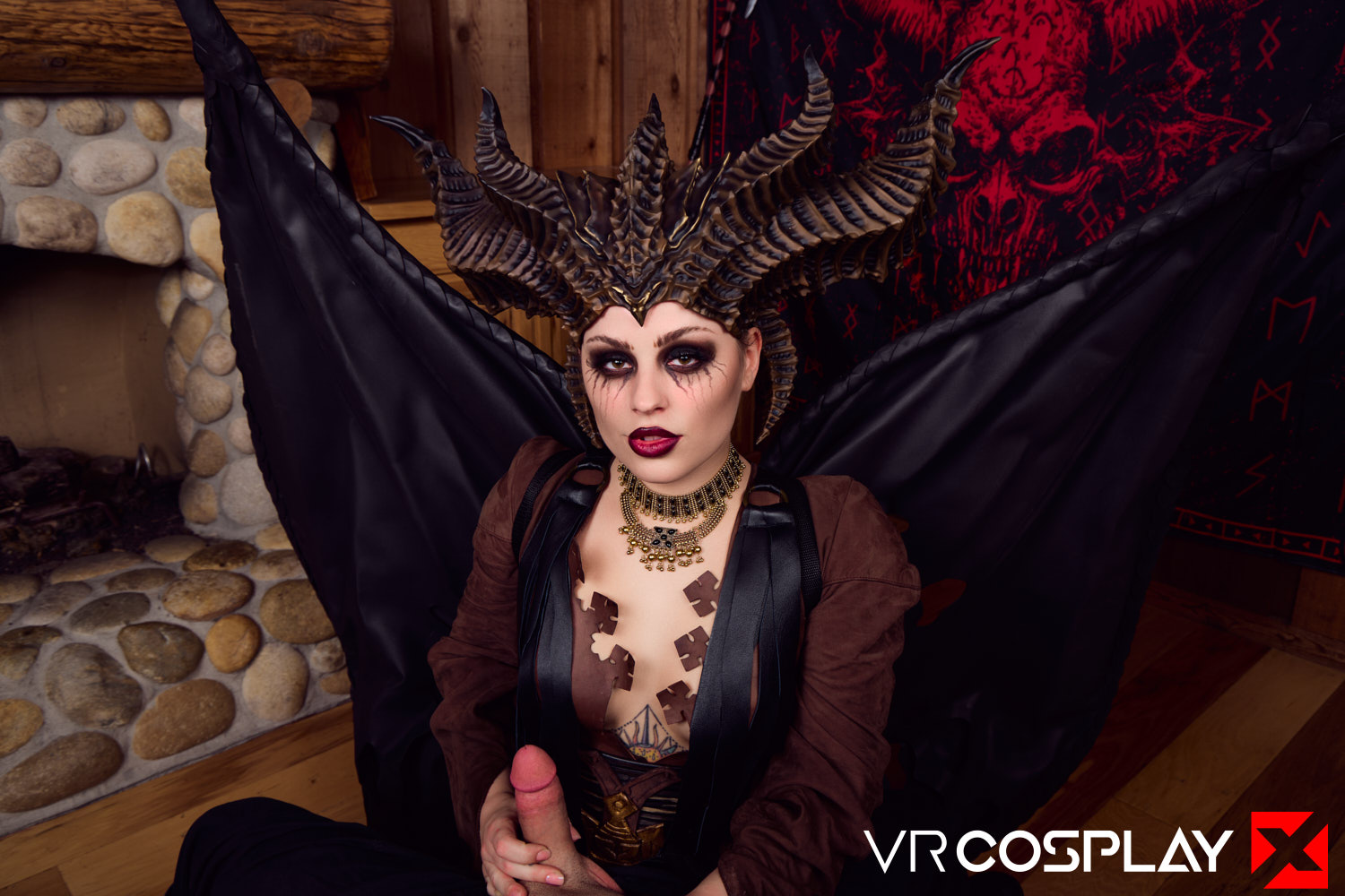 Welcome to the cathedral of horniness my child. Hail, the Mother of Sanctuary and Daughter of Hatred, who has returned to break your chains and conquer the high heavens of pleasure with you. The Lords of Hell are on their way and you must choose your side. Seal the pact with Lilith and she’ll awaken ancient lust and desires from deep within you, so you can get deep within her. Embrace the Queen of the Succubi and let her seduce you, fuck her and she’ll show you all the secrets of Sanctuary. She gave you free will, now use it! Offer up your cock to temptress Anna Claire Clouds as Lilith in the Diablo IV parody you've all been waiting for, in our high resolution stereoscopic VR porn Halloween special. It's time to get into a very hot & unholy communion with the Blessed Mother.