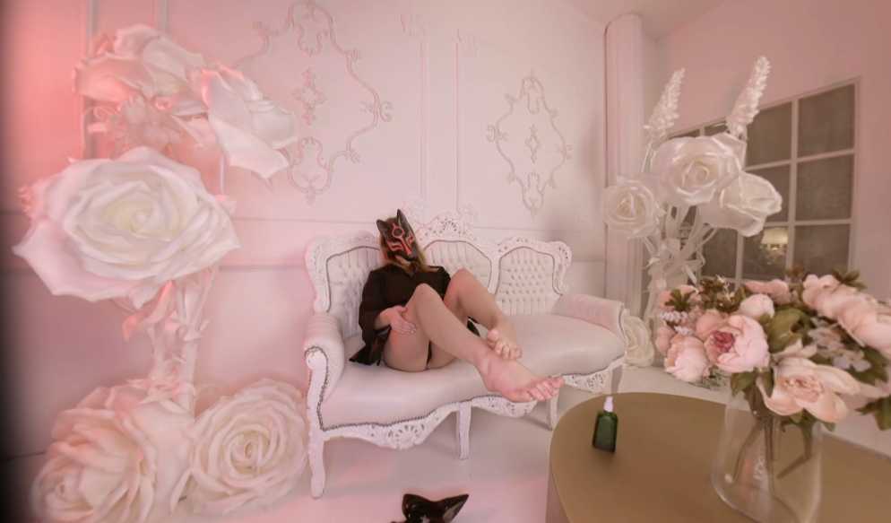 Phoenix has been dancing all night on a kinky masquerade party. Now her feet are tires, swaty and a bit dirty. So she sits down, gets rid of her stockings and give her tiny feet a quick massage before she goes to bed. She will dream of a footlover that will take care of her feet next time so she does not need to do it on her own. Would you like to be that for her? Well kneel down in front of her, watch her massaging her feet and ask her about it - maybe she will allow you to lick her feet next time.
