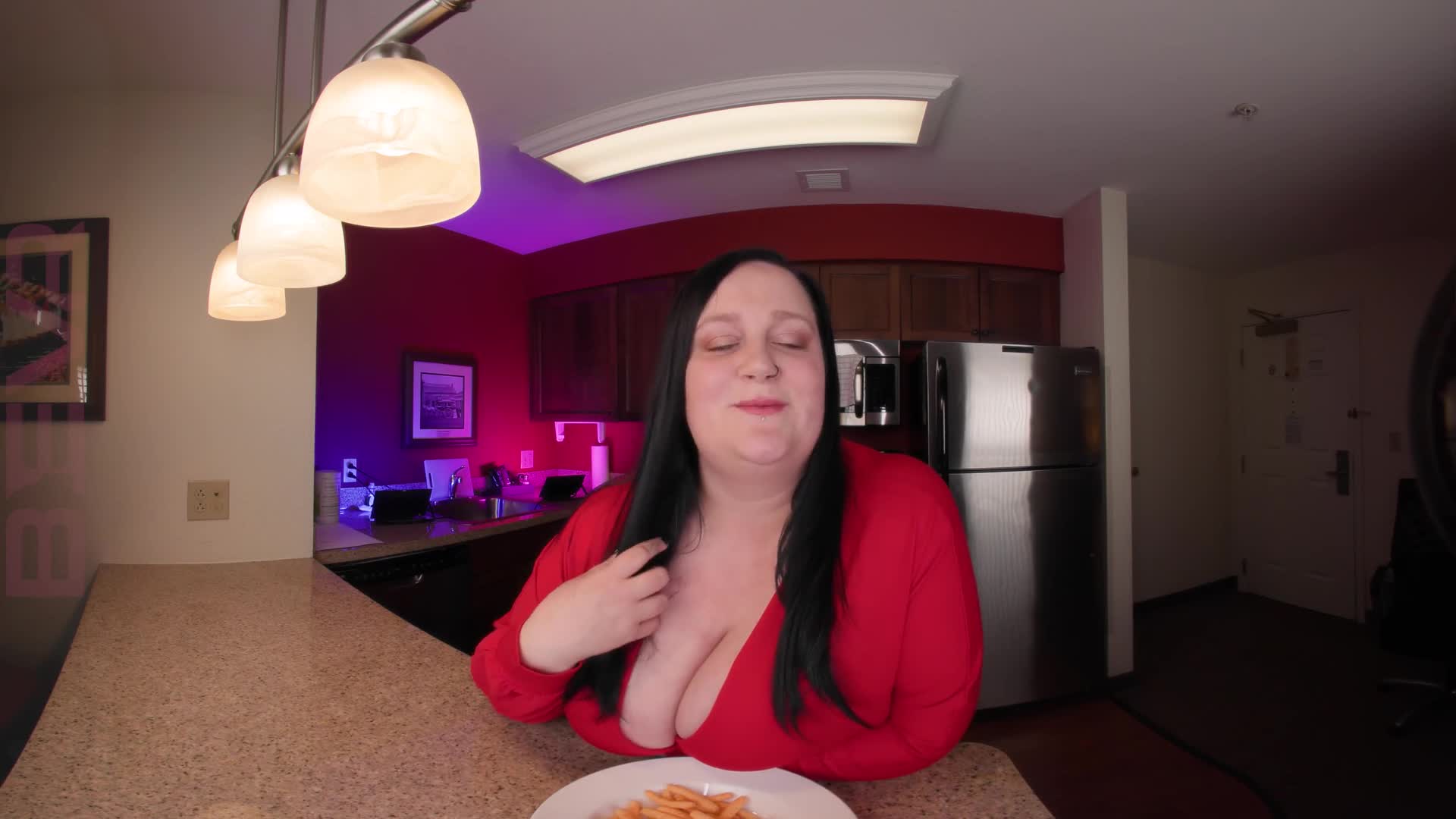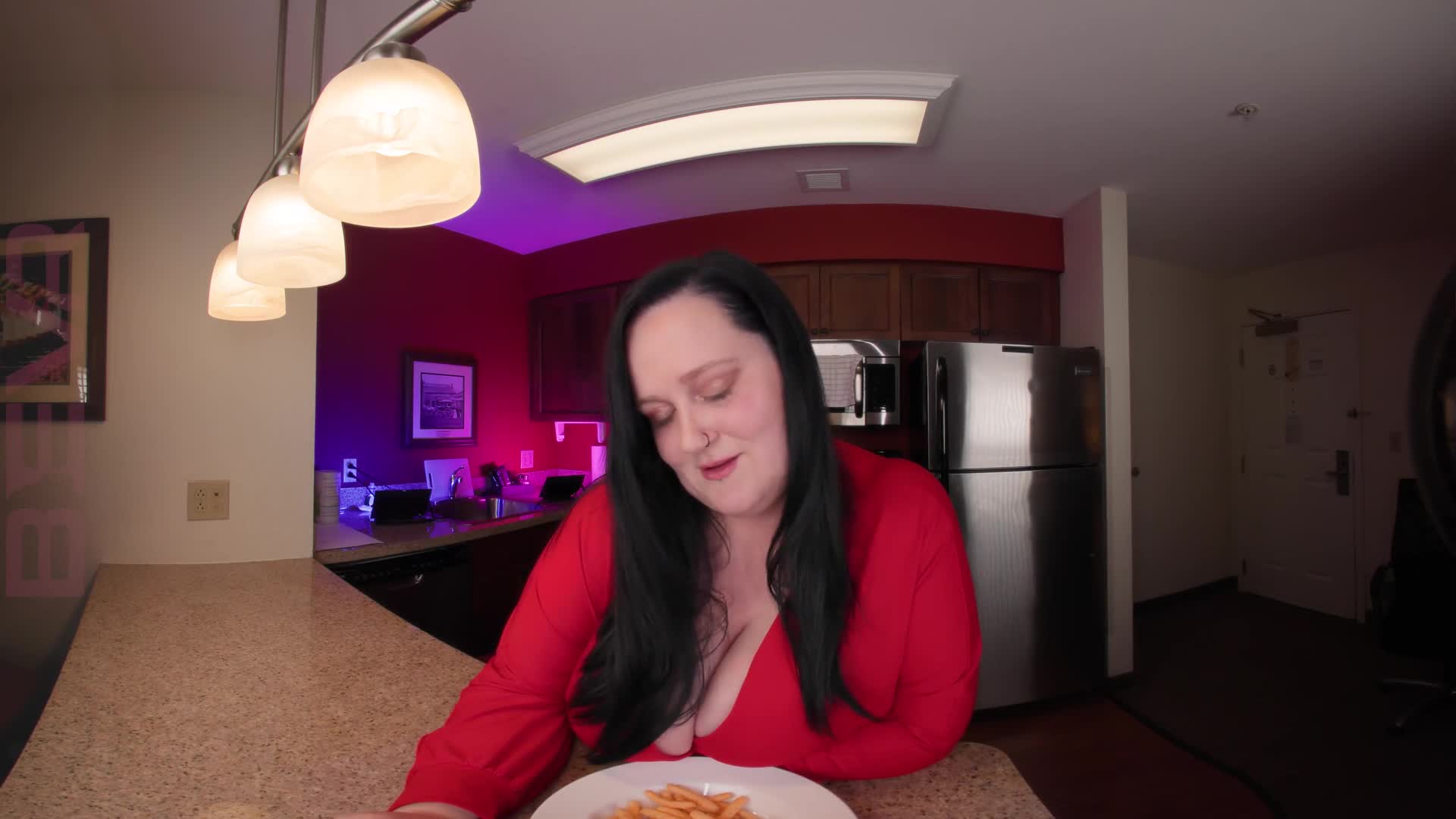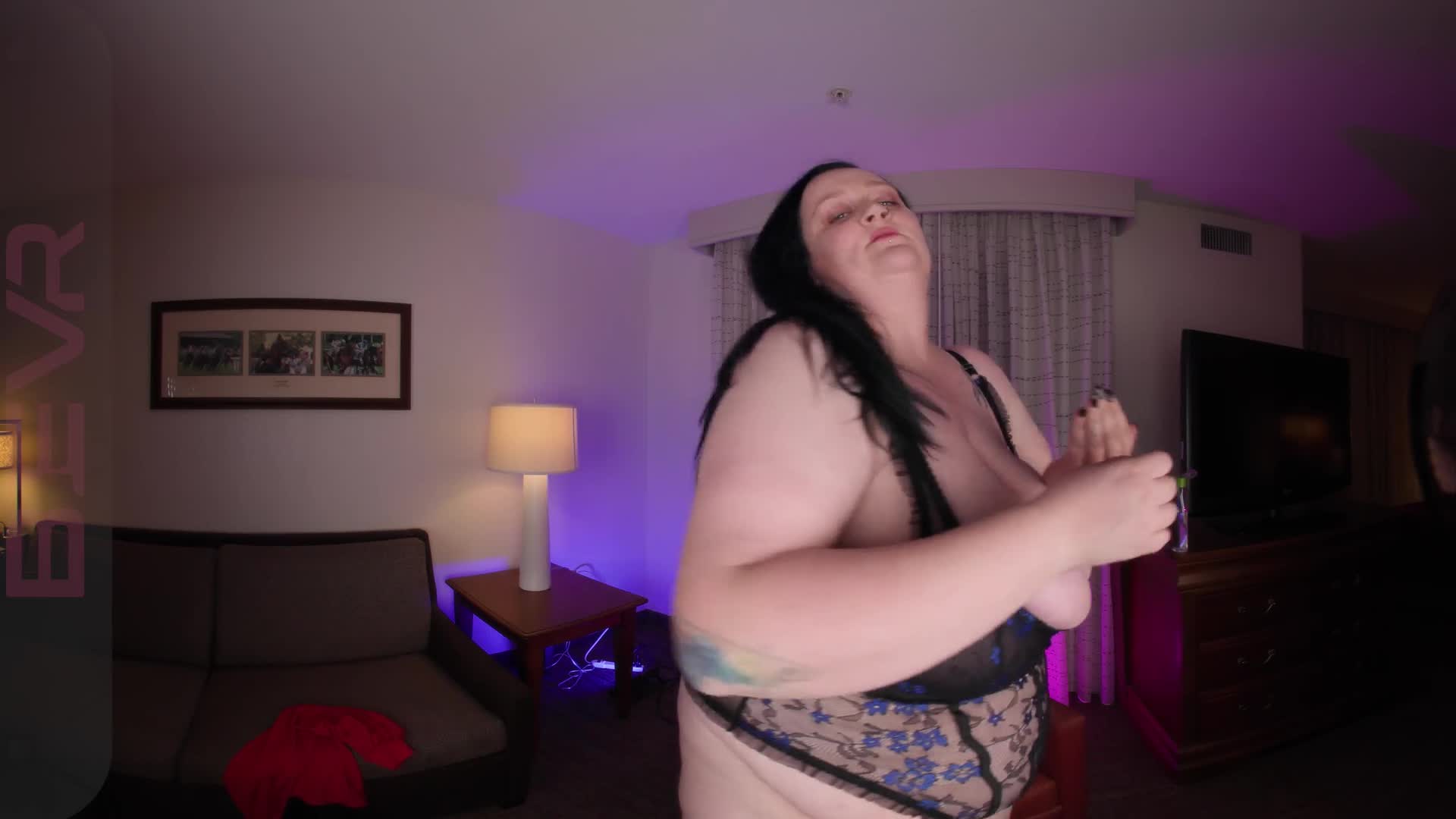 Dolly Darkside turns a simple hangout into something unforgettable in "The Way You Look at Me". After thanking you for the snacks, she catches you staring at her cleavage and decides to take things further. She teases you with a slow, confident strip before guiding you to the living room for a sensual tit job that leaves the air charged between you. In the bedroom, she pulls you close for deep, intimate missionary, holding eye contact and savoring every moment as you both finish together.