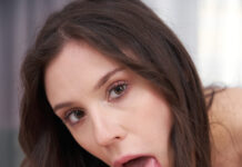 Mandy Moon comes back home after a hard workout in the gym and enjoys some hot tea. Finally, her boyfriend returns from work. She welcomes him passionately and tells him everything about the day that passed. She offers the dude a cup of tea as well, but he has something else on his mind. He gives Mandy Moon a treat, and she happily starts licking it. That view turns the dude on to the limit and makes him crave getting his hard dick licked and sucked as well.