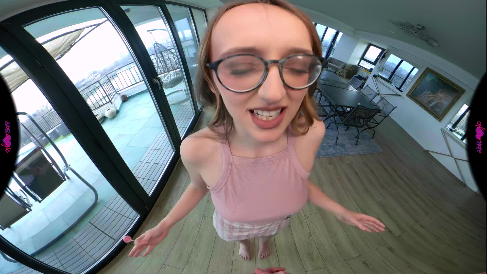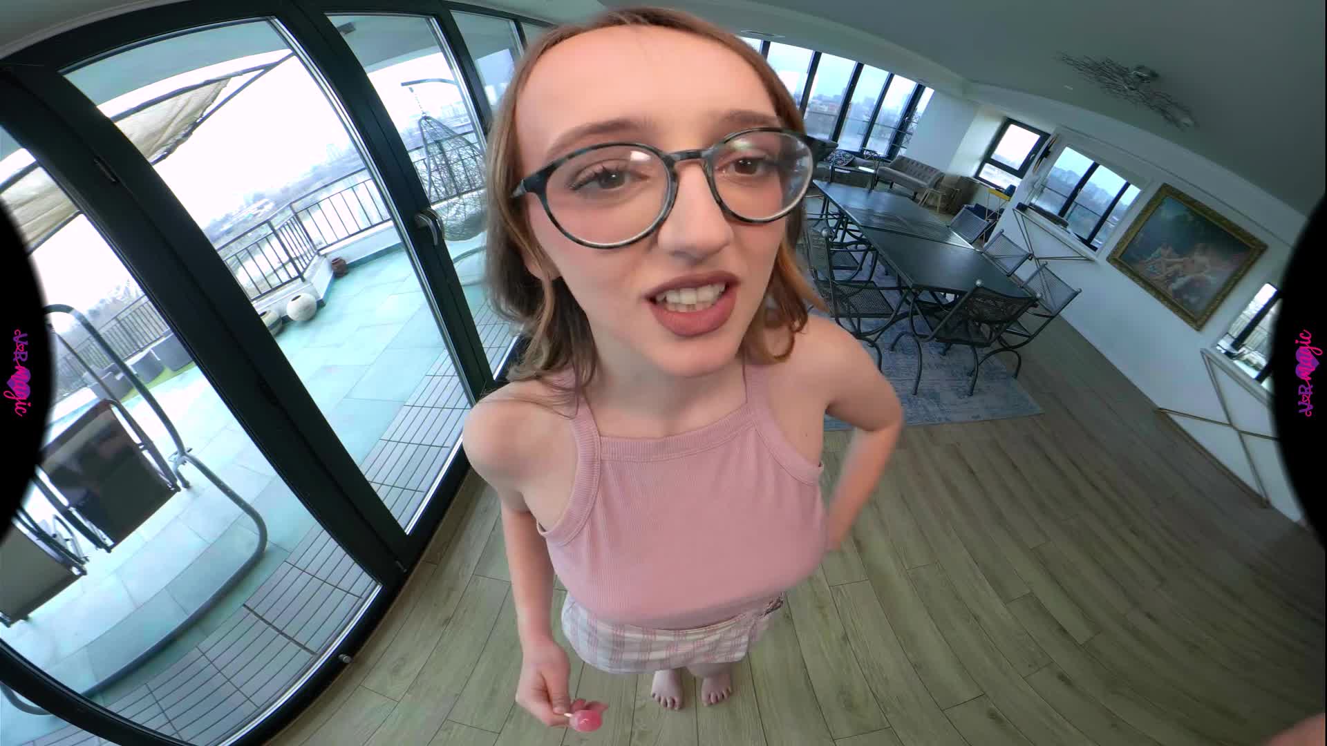 You stay chill as Emejota, your stepsister, walks toward you. She talks a little in Spanish, teasing you, before bringing up that question about fetishes. She asks you if you’ve ever had anal sex, and she’s very surprised to hear that you haven’t. She tells you that you absolutely have to try it, because it’s amazing. She doesn’t let it go, moving closer, making it clear she wants to be your first. The tension stays, and you can’t look away. She tilts her head, daring you to react, eyes locked on yours, insisting you let her guide this first experience. Can you say no?