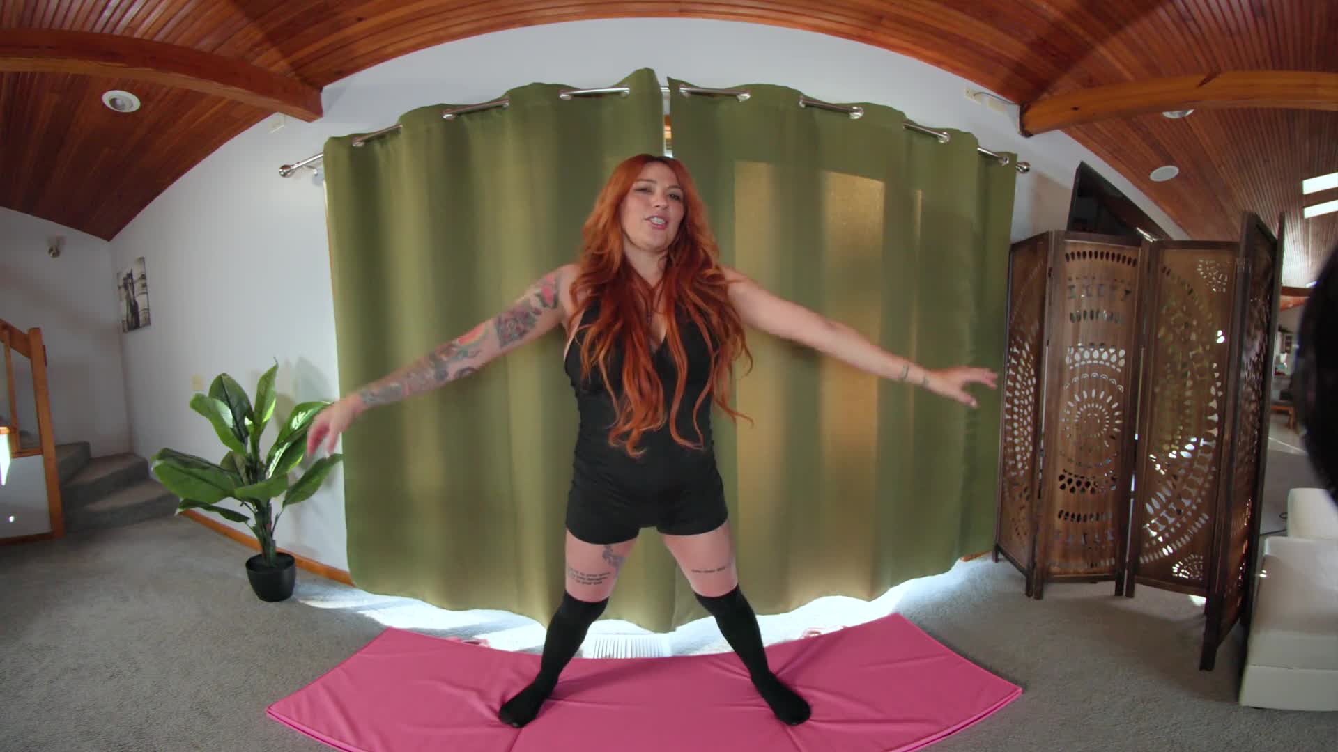 Join tattooed redhead Evee Graves for an intimate nude yoga VR experience that will leave you breathless. The scene opens with Evee introducing herself in her sleek, form-fitting black one-piece workout outfit that accentuates her generous curves and intricate tattoos. She settles onto her yoga mat, ready to guide you through a session that's about to become much more than just stretching. As she begins her warm-up routine, Evee's movements are fluid and mesmerizing. With each pose, she becomes more comfortable, gradually shedding her restrictive outfit piece by piece. The black fabric slides away to reveal her pale, freckled skin and the colorful artwork that adorns her body. Her voluptuous breasts are freed first, bouncing gently as she transitions between poses. The VR camera puts you right there with her, allowing you to appreciate every angle of her athletic yet feminine form. Watch as she moves through increasingly challenging yoga positions, her flexibility on full display. From downward dog to warrior pose, each movement showcases her toned physique and natural beauty. Once completely nude, Evee seems to find a new sense of freedom in her practice. Her movements become more sensual, more deliberate. She arches her back, pushes her hips forward, and holds poses longer than necessary, knowing you're enjoying the view. The camera captures every detail – the way her muscles tense and release, the beads of sweat forming on her skin, the soft sighs escaping her lips. As the session progresses and her body becomes fully warmed up and relaxed, Evee's focus shifts from yoga to self-pleasure. She settles onto her mat, legs spread wide, giving you an unobstructed view as her hands begin to explore. Her fingers dance across her inner thighs before finding their way to her already moist pussy. What begins as gentle caressing quickly builds in intensity as she rubs her clit with increasing urgency. Her breath comes in ragged gasps, her back arches, and her body trembles as she brings herself to a powerful climax that echoes through the room. This VR experience combines the beauty of the human form in motion with raw sensuality, creating an unforgettable encounter with the stunning Evee Graves.