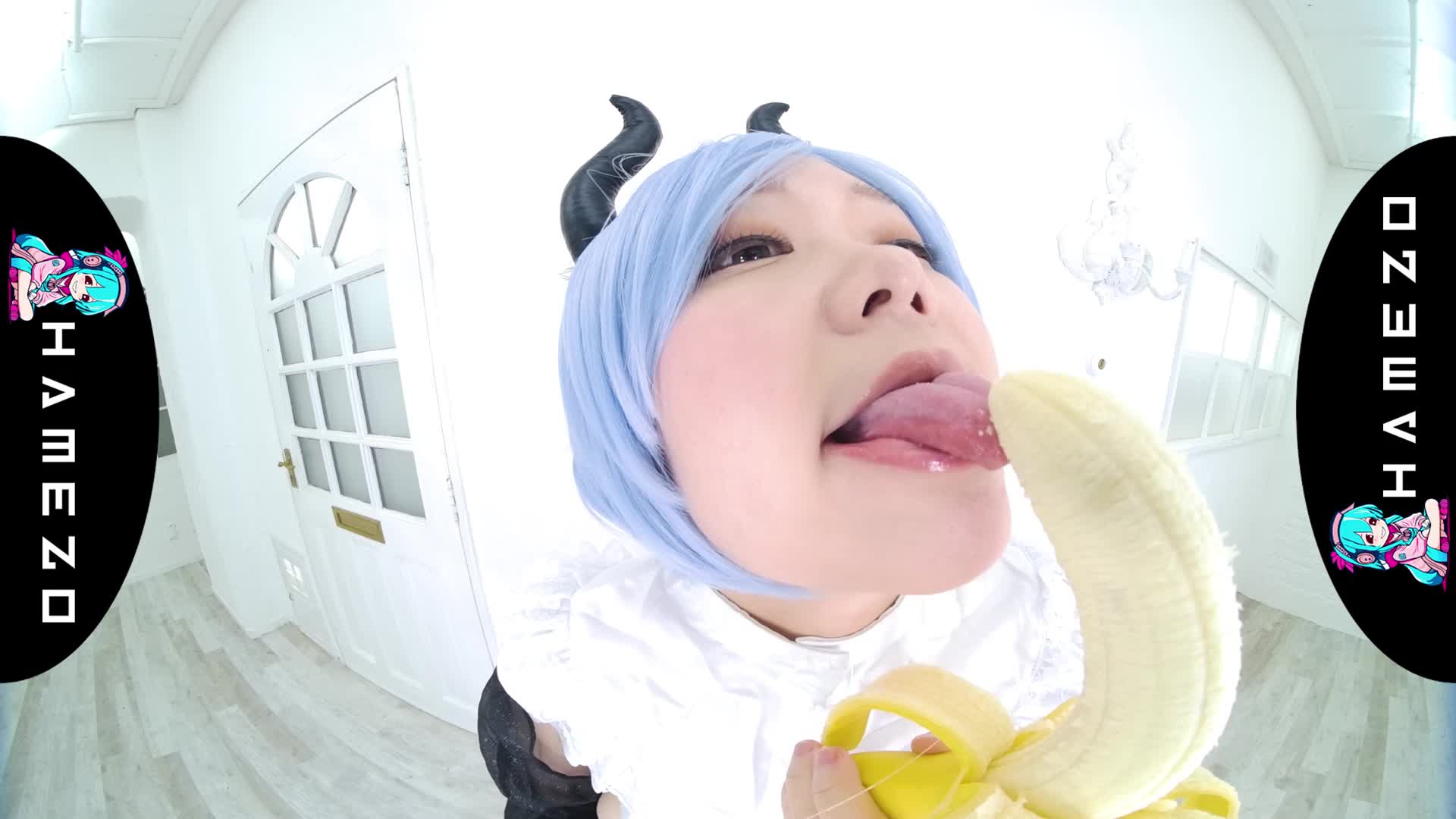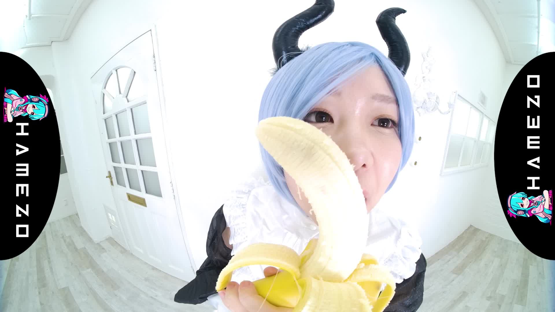 You all went crazy after seeing Miwa Ichikawa as a succubus. Especially since she had two previous scenes as an angel. The duality of this hottie is amazing. She is all you need for a fun time tonight. After her first scene as a devil in which she had to play alone, this time she gets to enjoy the cock of a mortal. She starts by playing with a banana, and when you see her play with that fruit, you’ll want your dick in her hands and mouth. After the nice banana play, she got close to our guy and blessed him by letting him play with those marvelous, big, natural titties. You will also feel blessed when you see those massive milk jugs in POV VR. Like the titty play wasn’t enough, she also gave out guy a nice boobjob. She’s great at it, and that fat cock looks amazing in her ample bosom. She prepared that cock for some fun time, and once it got hard, she got on top of it and started riding. She’s not just a busty girl. Miwa also has a big, juicy booty. And it is so nice to watch her bounce that ass in reverse cowgirl. What followed is a nice and dirty lovemaking session in which you can see that hairy pussy of hers fucked in so many positions. And after all the fucking, the lucky big dick guy who got to enjoy her hole dumped all his sperm inside her.