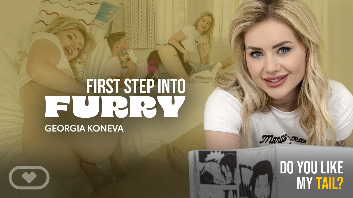 You’re lying back on the bed when Georgia Koneva strolls in with a sly smile. Her blonde hair falls over her shoulders, and as she leans down to kiss you, her skirt flips just enough for you to notice something unusual. A fluffy fox tail sways between her legs, and she giggles, sticking her ass out and wiggling it playfully. She grabs your hand, lifts her skirt, and lets you see exactly where it’s coming from—the tail is a plug, already snug inside her ass. She climbs on top of you, grinding her hips as she starts to masturbate. Then she wraps her hand around your cock, stroking before taking you into her mouth with deep, wet sucks. You fuck her ass in missionary, then she rides you in cowgirl and reverse cowgirl, her asshole tight. Finally, you flip her over into doggy, fucking her deep until you both moan—and you cum hard over her ass.