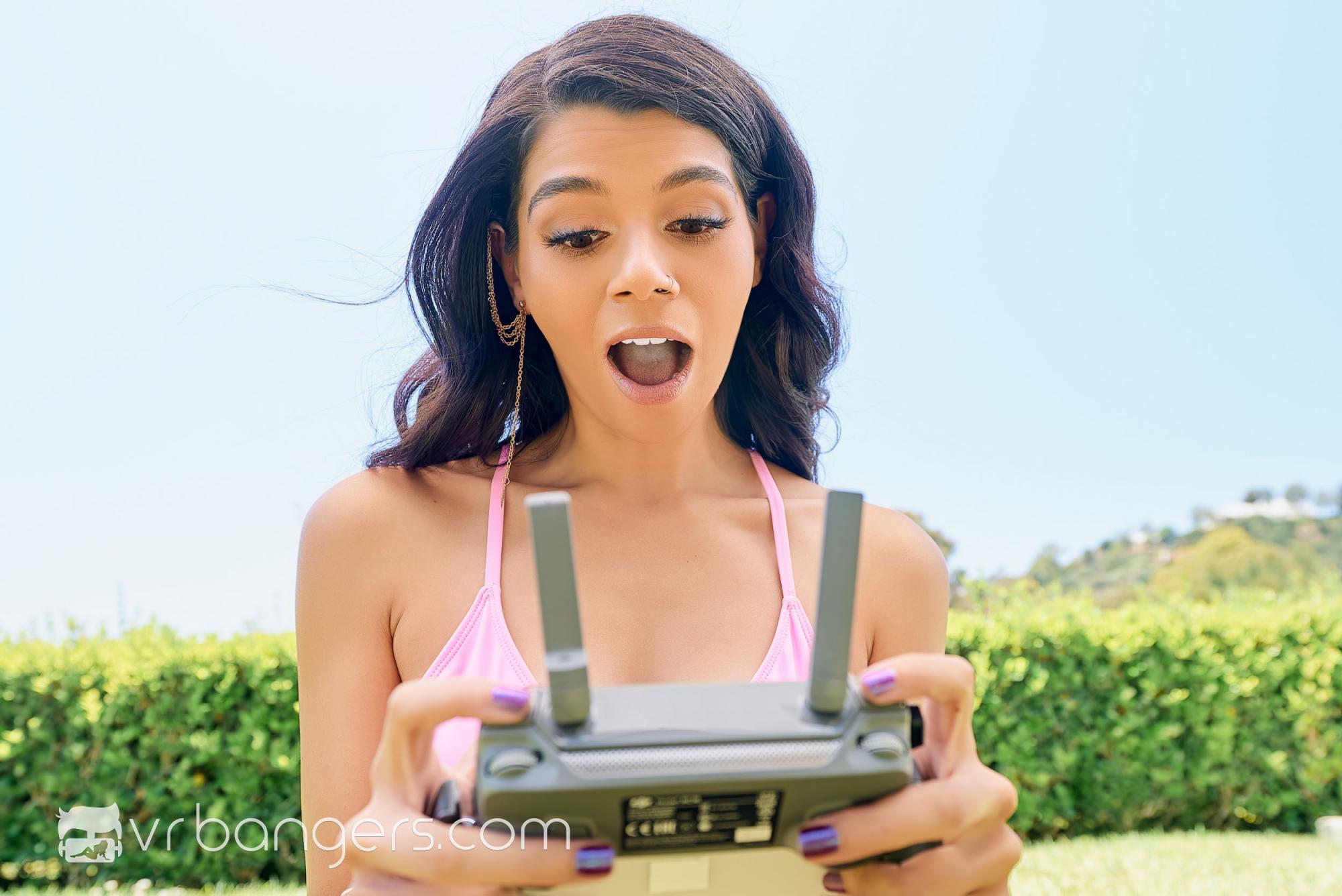 Do you like drones? You know, these flying machines that look like toys but can be used in a lot of… different ways. And even though we do not encourage you to spy on anyone, we know that you can use a drone to do that. How can we tell, you could ask? Well, our amazing brunette VR porn star, Harley Haze, told us so… You see, this always-horny VR xxx babe is always on the lookout for huge cocks in her neighborhood, and since today her little drone will somehow get stuck in your courtyard, she'll have to face the consequences of spying on you. Flying, Spying, Satisfying is our latest virtual reality sex experience that will be all about that – and even though she'll get in trouble today, something tells us that you already know what's the proper punishment for that. VRBangers.com is a website that's meant to combine everyday situations with some kinky motives to give you the most of the pleasure – and on behalf of this voyeur VR sex movie, this will be the case, too. Harley will simply have to face the consequences of what she's done – and, luckily for you, she'll be more than ready to give you everything you want as compensation for her tricky activities. Now you only have to wear your VR goggles and, well, actually catch her spying on you with that drone – and as soon as she'll come to recover it, just tell her that you'll call the police to report her for breaking your privacy, and to avoid that she'll have to… cooperate. Something tells us, though, she was expecting such a course of the situation anyway – but who cares? The most important thing is that you're about to get some nice banging and a sloppy blowjob today, right? Hell yeah!