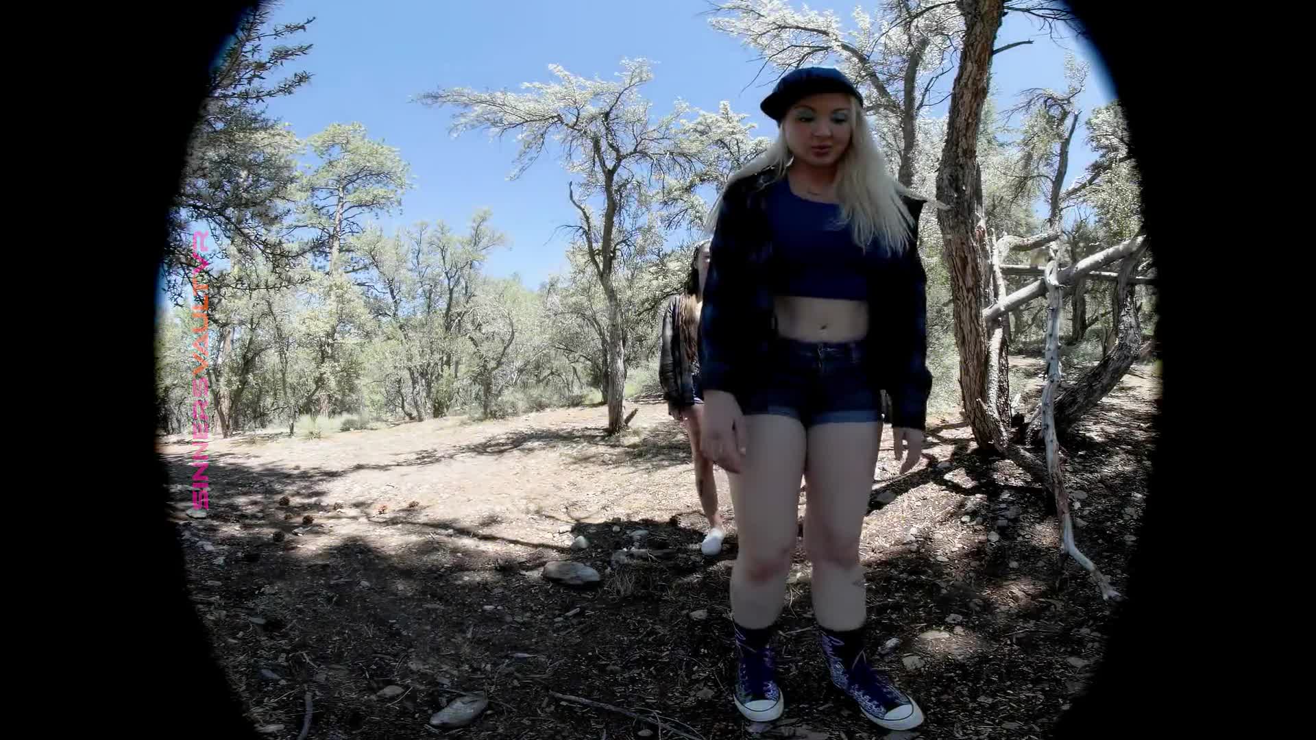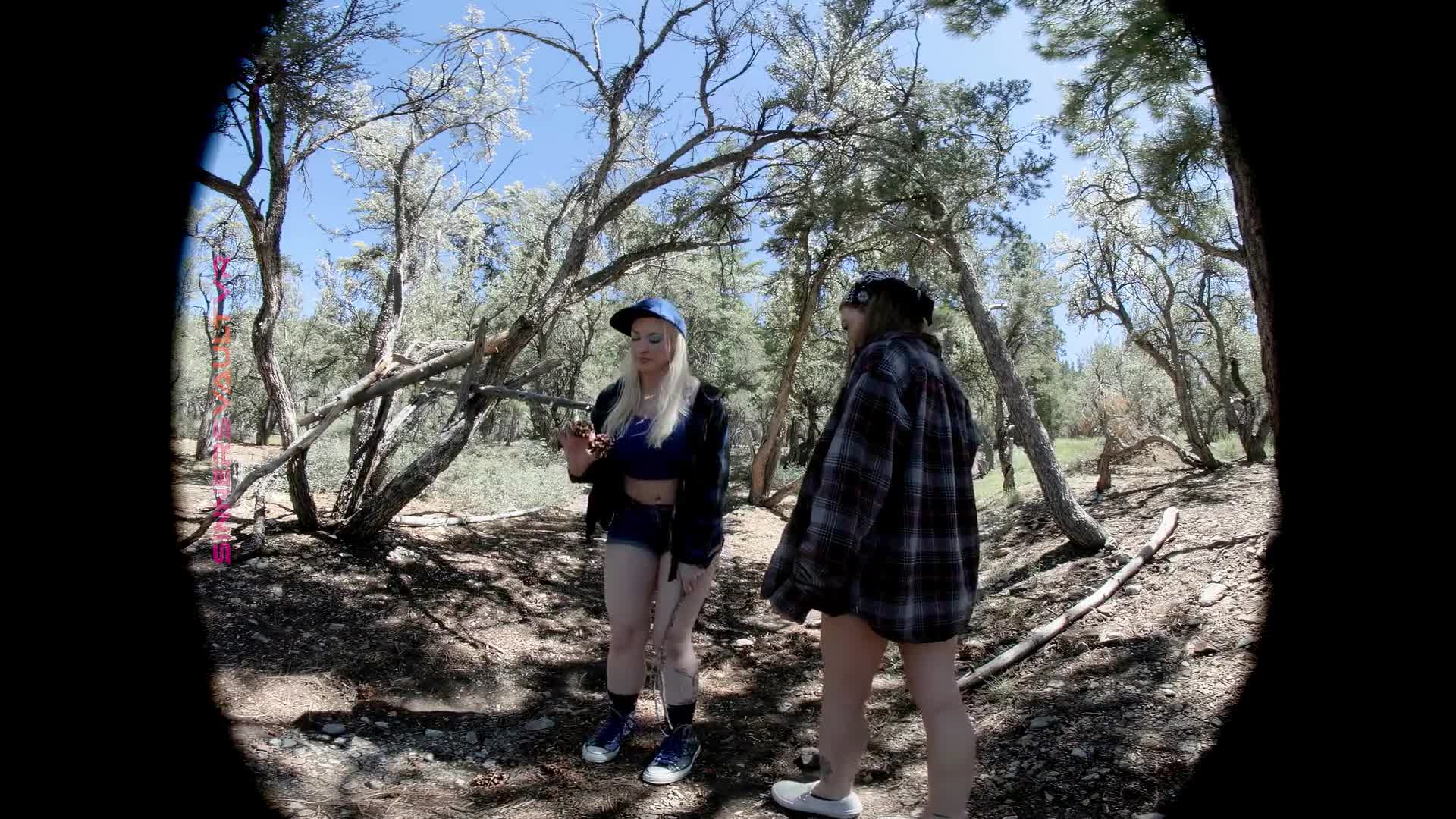 Amethyst Aura and Leya Falcon trade city life for the serenity of the forest, dressed in tight jean shorts and unbuttoned flannels, letting the breeze kiss their skin as they wander beneath towering trees. Their plan to roast marshmallows was interrupted by the fire ban, so they decided to play 21 questions. Starting innocent but quickly turned taboo. The girls expose themselves out in the open outdoors and masturbate so the other can watch.