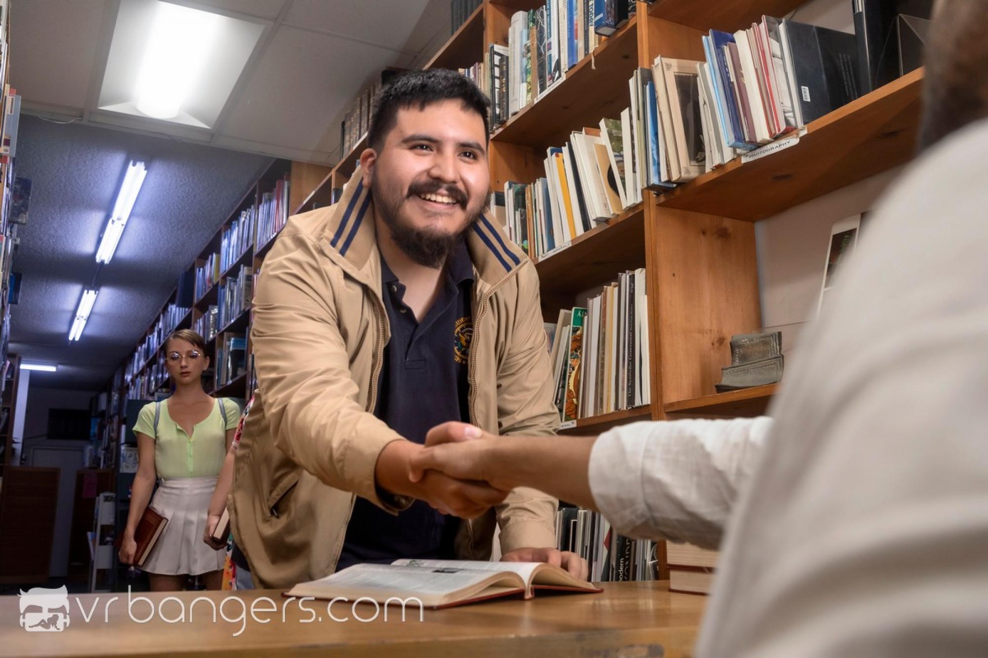 Have you ever had a fan? Or, more specifically saying, a super-hot female fan like Macy Meadows? We know that such things do not happen in real life, but inside of our realistic virtual reality porn environment everything is possible – and we are always glad to come up with ever-new sexual fantasies of our fans and members. Geek Girl is our latest teen VR porn video inside of which you are going to become a famous writer. Today you will be signing books for your fans, and it will be a rather boring evening… until SHE will come to you. The girl will be really exciting to finally meet you and she will be asking for that autograph of yours – and even more than just it, because she will offer you to hang out with her in the evening of this very day. Inside of this public VR porn scene you will of course agree to that proposition and meet her later in the very same library… and then the true part of this virtual reality porn experience will really begin. Wear your VR goggles to appreciate all the geekiness and cuteness of this VR porn star and have a blast with this glasses VR porn movie – we promise you that you two are going to have a whole lot of fun and that Macy will definitely prove to you that she is your #1 fan. She will be so eager to check whether you are so sexually free like the characters from your books – and she will be more than ready to check even the kinkiest of her sexual fantasies with you tonight, begging you to keep on fucking her harder and harder. Hopefully, you are ready to come up to the needs of this teenage slut, because she might tell her colleagues about you, and such "adventures" would become a regular basis of your autographing evenings!