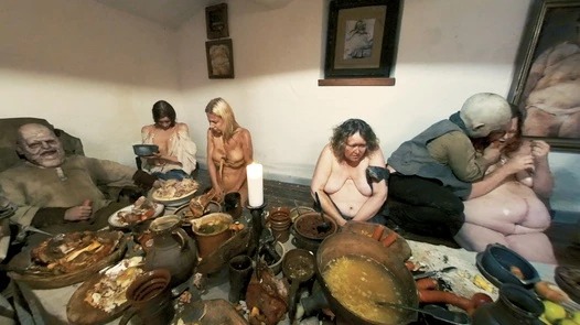 A appealing and breathtaking feature from our large library of VR big tits. Amen, I say unto you, this is the place of the worst sin - the house of a humungous tyrant and his grisly family. They threw a feast and the tables are flooded with food. At the table, kidnapped women being fattened up for the insatiable master who likes to munch on their fat pussies and huge tits full of milk. This is the place where the orgy of gluttony and sex happens. Nobody leaves the table until he's full of sin!