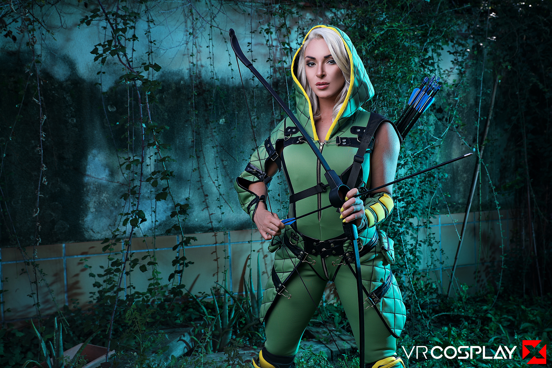 Oh Black Crow, you've been trying to get with Green Arrow for a while now haven't you? Something about watching her handle those arrow shafts gets you rock hard. Today you've invited her over to talk about potential criminal activity in the area, well at least that's what you told her, in reality, you just wanted to have her alone at the Crow's nest. After she arrives and makes a dig at you for your shithole of an apartment with a twinkle in her eye, the game is truly afoot. Grab your headset and jump into VRCosplayX's very first, and ever so hot gender swap VR scene.