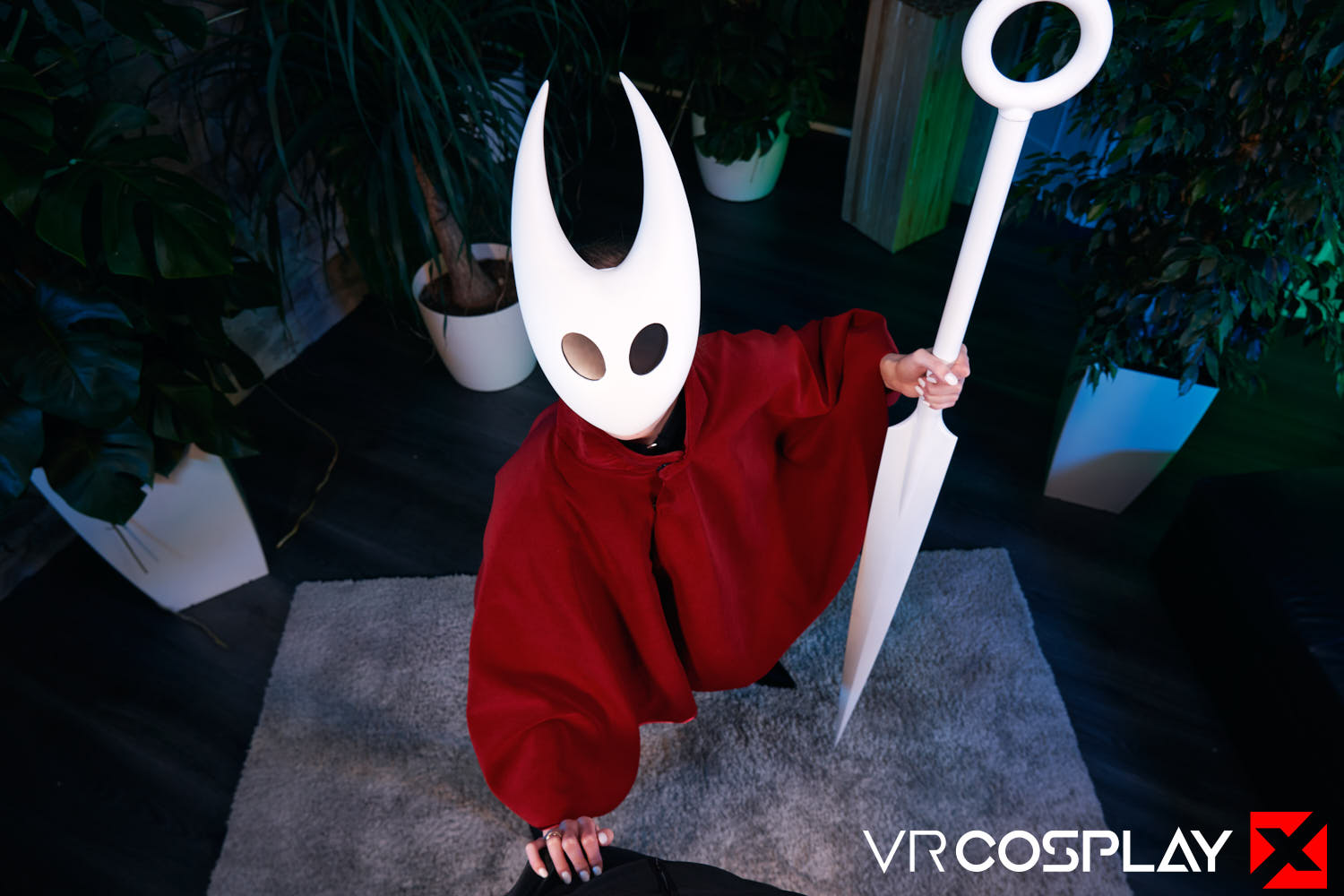 Again we meet little ghost. Hornet is the skilled protector of Hallownest's ruins. She wields a needle and, thread and nice pairs of tits under that cloak. Do you haunt her dreams... Or does she yours? Her silky brunette hair, bright blue eyes, and gorgeous face is hidden behind that mask, waiting for you. Grab your Meta Quest 2, Oculus Go, or Valve Index, and watch Stacy Cruz as Hornet from Hollow Knight in a 7K 180-degree stereoscopic vrporn cosplay parody here on VRCosplayX.