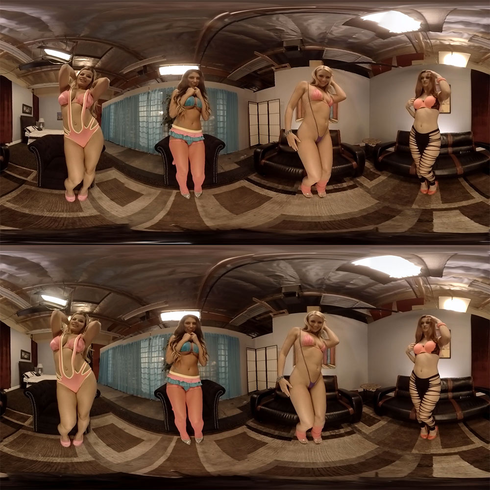 It’s their first time and ours in HoloGirls flagship 360 degree scene. Be completely surrounded by four beautiful women, all vying for your attention as they strip, pleasure and expose every inch of themselves to you.