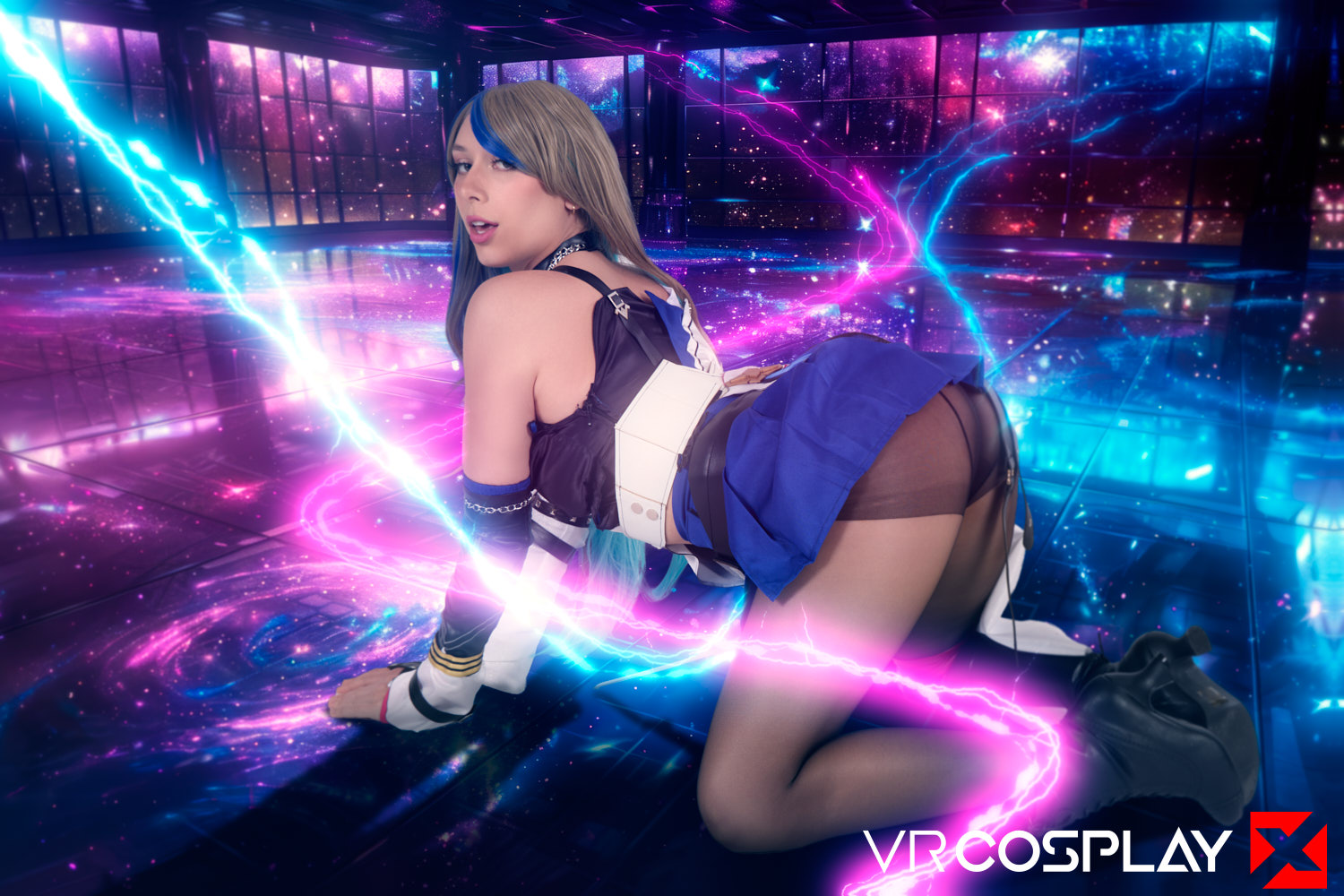 Let Kay Lovely guide you on the Path in the way the Aeons would want! Kay plays Serval, one of the coolest & sexiest characters in the Honkai Star Rail universe. She’s a rockstar, mechanic, and a damn good time. Her role in the band Mechanical Fever has set many hearts yearning and raised temperatures across her home city of Belobog. She’s got a deep natural curiosity about the inner workings of all things, and she wants to know what’s under those clothes and gets you turned on. Serval normally performs her best moves in public, but this time she’s going to be putting on a show for you alone! Get plugged into the Honkai Star Rail universe using your Meta Quest 3, Apple Vision Pro, or Valve Index and Trailblaze the sexiest Path of them all with unbelievably hot blonde Kay Lovely.