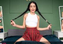 Kwini Kim is a snack. She is beloved by anyone on the set, and everyone watching her videos adores her. She is ready for a fun time every time she comes to the studio. Her performances are so natural and so wild. She is ready to have a fun time with our friend. Especially, she has a massive cock. She can feel the big dick energy when looking into his eyes. And she confirms that a hefty cock is waiting for her when she touches the bulge of our guy. You can see how excited she is in her eyes. The way she looks into the camera will mesmerize you. Once she takes it out, she puts that dick in her mouth and starts worshiping it. She sucks and sucks while getting naked for our friend. She even masturbates to get her pussy ready for that massive dong. And she does it while giving our friend an amazing foot job. When she feels ready, she turns around, bends over, and invites our friend to split her pussy open with his cock. Her tiny booty and that asshole of hers look amazing when she gets fucked from behind. Not to mention that she has a grippy pussy that lingers on the shaft when our friend pulls out. The faster she’s fucked, the deeper she gets into an orgasmic trance. But after a while, that tight little pussy of hers needs a break. She wanks and worships that cock for a bit more and then gets on top of it to prove her spinner qualities. It’s so nice to see this tiny little babe on top. And after she gets pleased, she hops off and jerks off that cock for a while until she finally makes it cum all over her face and perky titties.