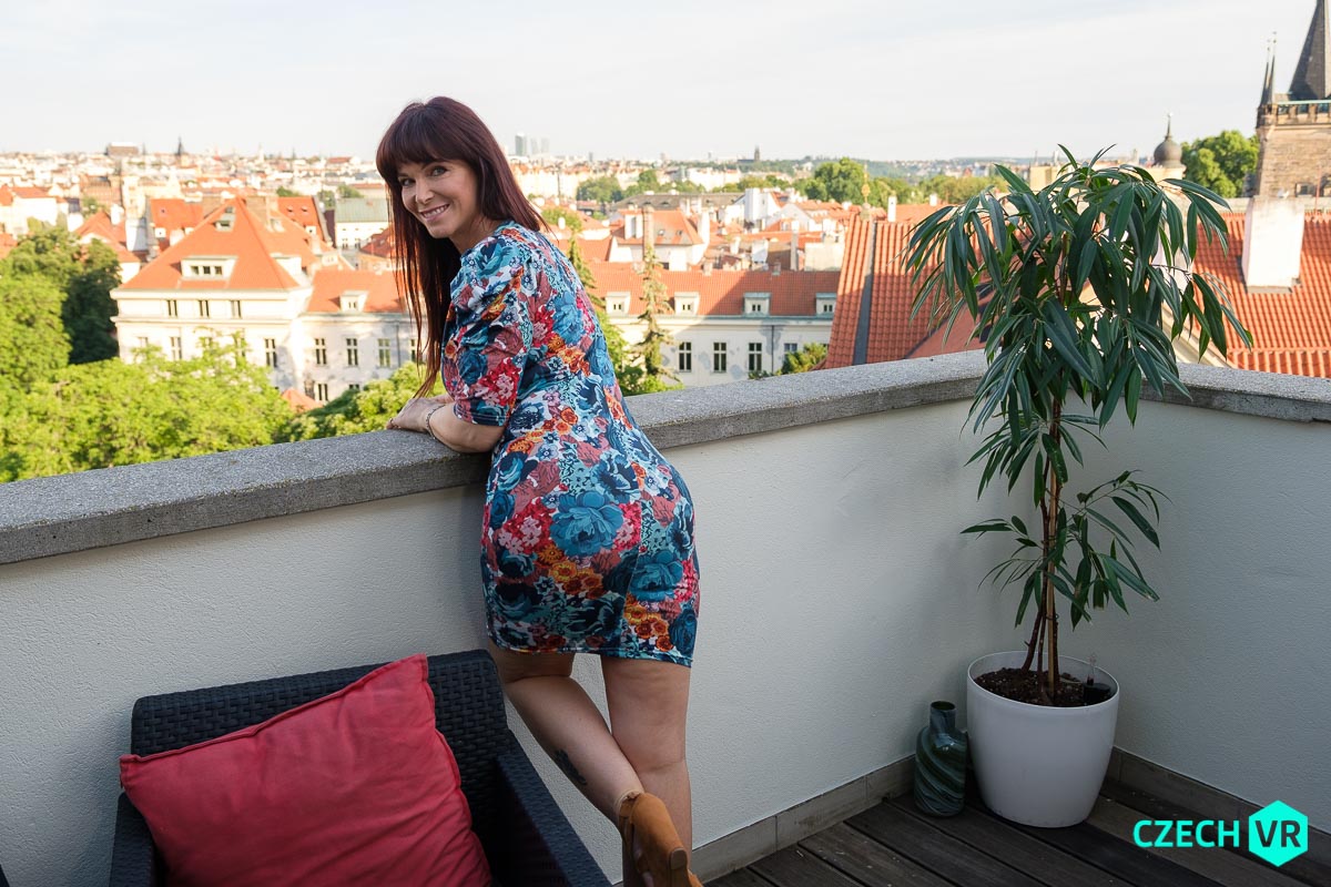 What a lucky husband you are! Not only having a hot wife but a hot mother-in-law too. So when she arrives without letting you know beforehand you just gladly spend the evening with her on your terrace with a spectacular view. Your wife is delayed at work so why not to have some fun with this hot MILF? She will not hesitate to whip out that hard cock out of your shorts so get ready for a ride.