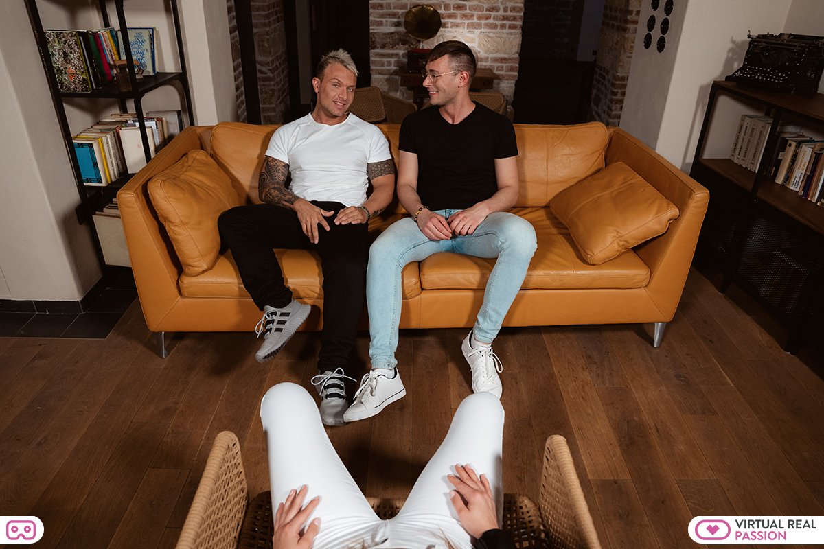 Your husband Joel Kris wants to experience something new, so he proposes you to open your relationship for a day. He brings his friend Marcus Anubis for you to be with other man. His plan: watching how you two hook up. When you meet Marcus, you instantly feel the mutual attraction. Both of them starts to tell you how incredible and hot you are… and that is making you feel a pulse between your legs. It increases when Marcus smiles at you and starts to caress your legs while Joel watch the whole situation. The caressing leads to kissing and that leads to fucking. You are feeling huge pleasure being fucked by Marcus and watching how your husband is reacting: he is masturbating himself. At one point, Marcus asks you if Joel can join you. And you smile with satisfaction, because you are sure that this threesome is going to be awesome!