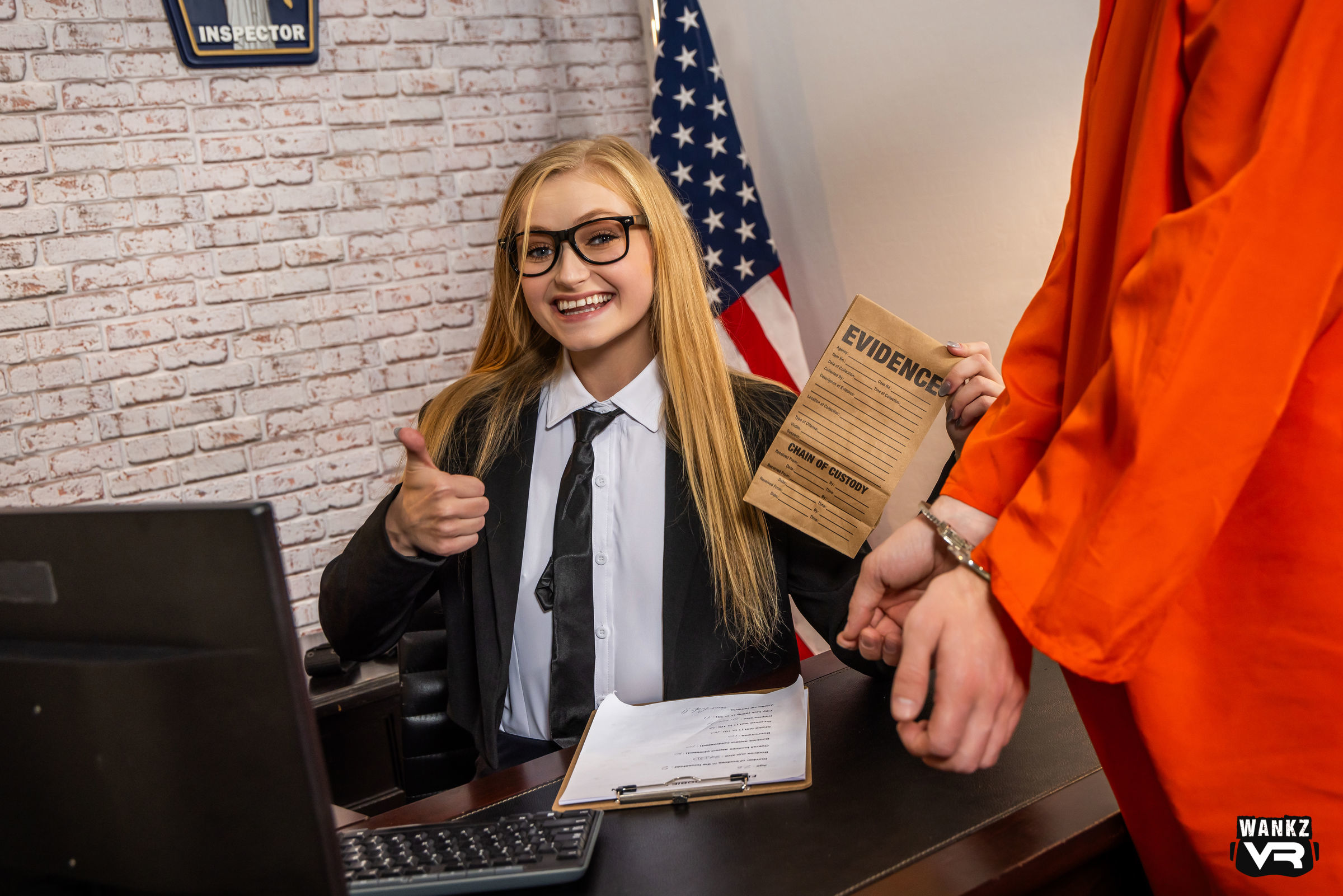 You'll find yourself in a real tight spot when you get into trouble at the border! It seems you've been charged with wanking your meat and it has caused an international incident. McKenzie Mae has been looking over your case and she found a way to get you off! The sticky sample they collected from the scene does not match and you'll be free to go. This has been a long ordeal and now that you get a taste of freedom, you want a taste of some McKenzie too! She feels bad that an innocent man has gone through so much and she'll suck on your dick to help make things right. You'll bend her over to fuck her in doggy style then sit back as she rides in cowgirl and while you're at it, you'll slide deep into her tight ass too! Pound her tight backside in missionary and more then blast your nut across her face!