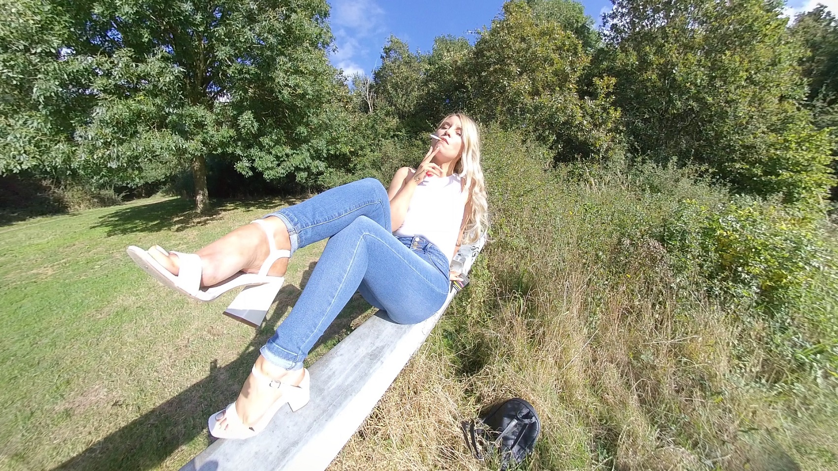 Enjoying a quite smoke in the countryside is own of Essies favorite things to do, join her.