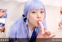Cosplayer Kotone Fujiki is playing with her tight and shaved pussy in wrong of the camera.