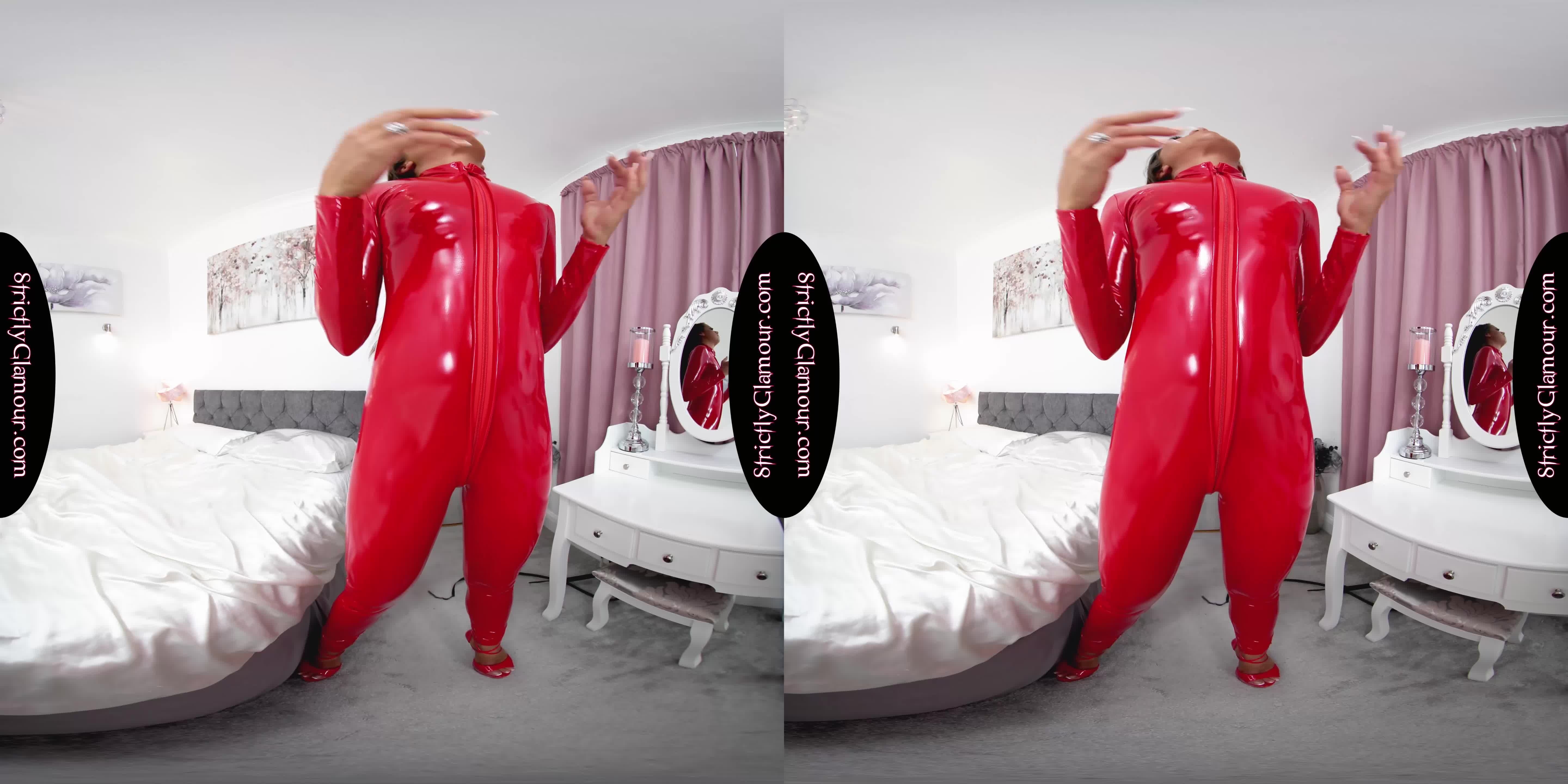 8K VR Video from shoot with mistress Lara Lee wearing, red pvc catsuit, black bra & thong, red high-heeled platform strappy shoes, in a tease to naughty nude whilst brandishing a leather bullwhip, that will ensure all losers are kept firmly in their place! 2D version of this VR Video is also now available...