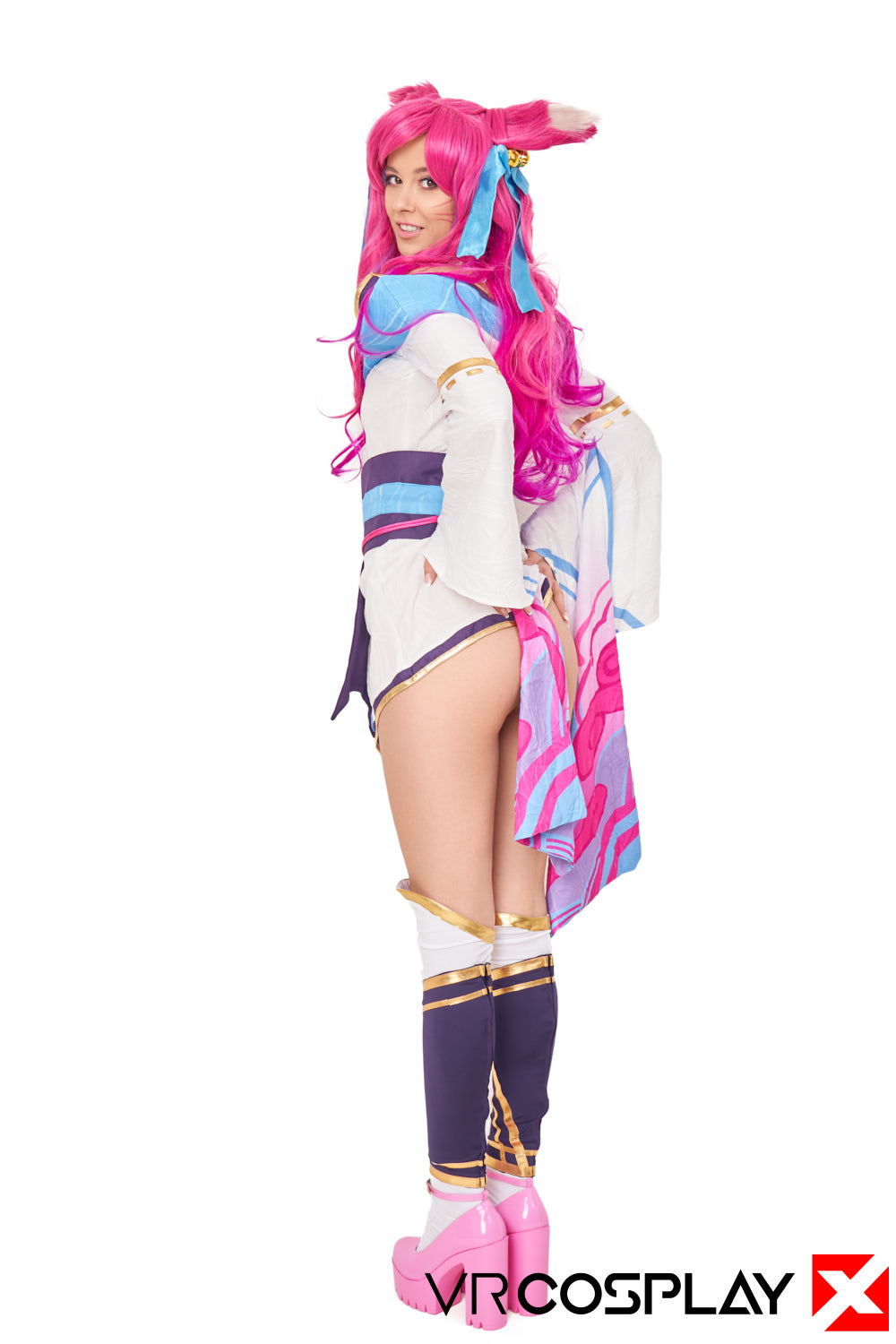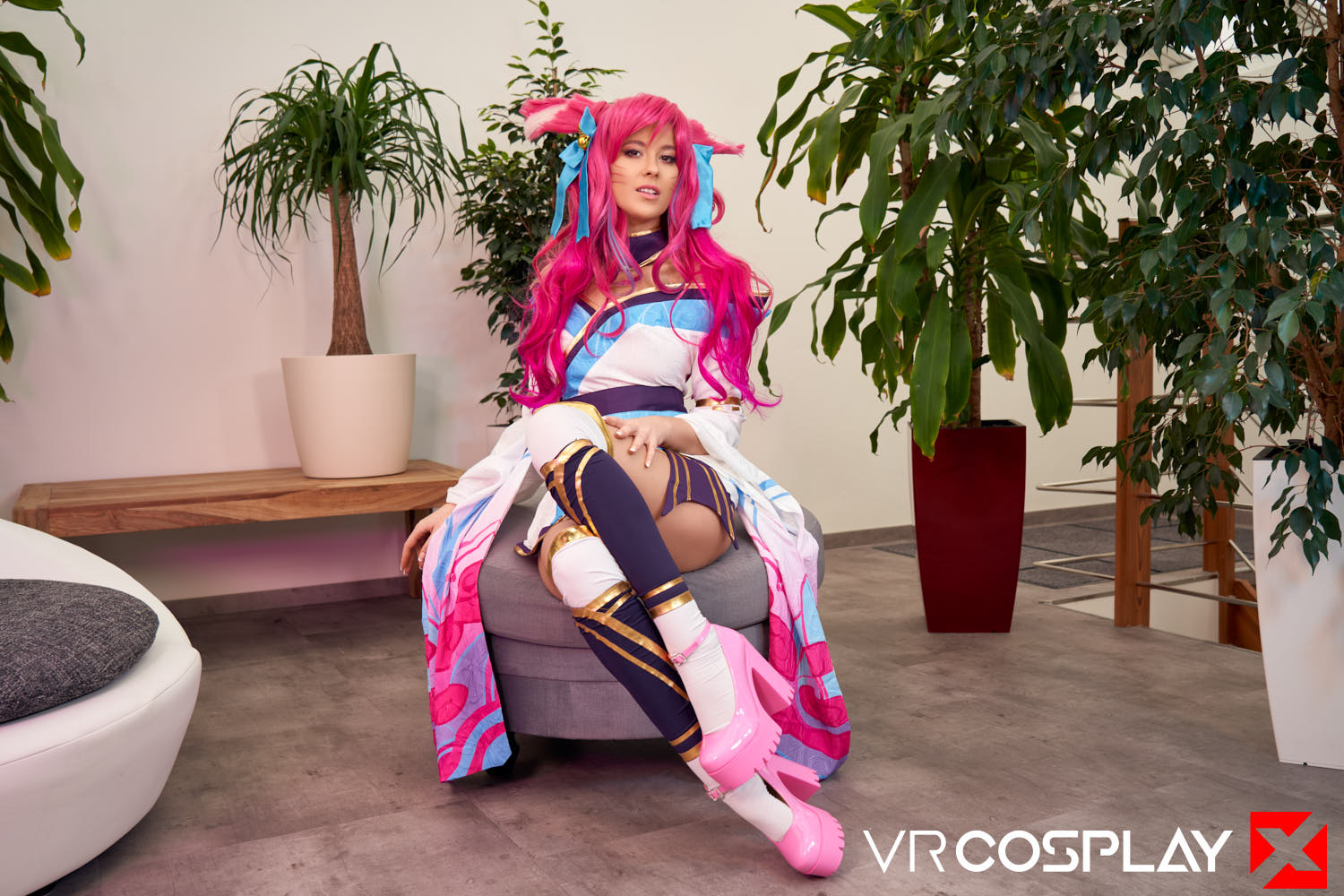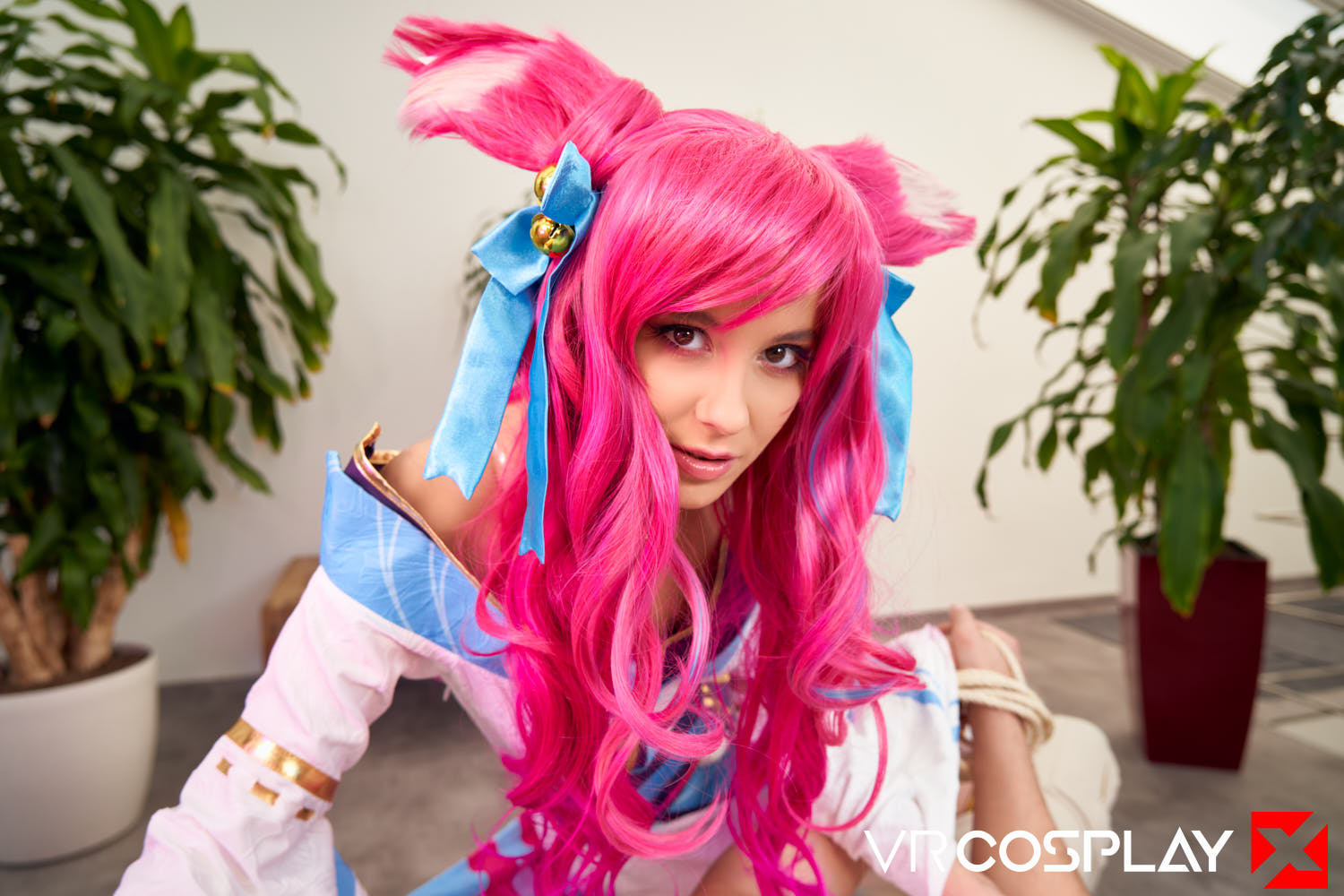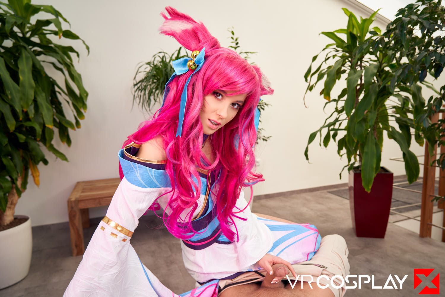 You’ve been captured by a savage and mysterious fox-like vastaya. She is the famed Spirit of Salvation and the fox all mortals are beckoned towards when their souls arrive at the spirit realm. She is offering you the chance to find your final satisfaction. Her skin reminds you of cherry blossoms, her tiny dress hiding her juicy ass is tempting, and her amber-golden eyes, as she gets down on her knees right in front of you, are enough to make you hard. Grab your Quest 2, Vive, or Valve Index, and fuck Eyla Moore as Spirit Blossom Ahri from League of Legends in our new 180-degree stereoscopic vrporn cosplay parody only on VRCosplayX.