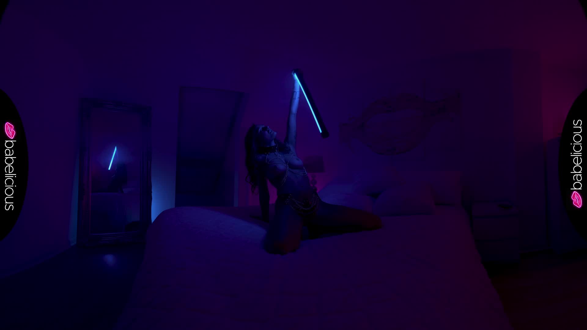 Get ready for this dark, immersive VR feature starring Sammi: she steps into a haze of swirling smoke and pulsing neon light, clad in wicked black leather bondage lingerie crisscrossed with gleaming silver chains that barely cover her glistening tits. A dark futuristic soundtrack throbs through the scene as she moves seductively, the chains catching every flicker of electric glow - then she slowly strips it all away until she's completely naked, delivering the ultimate sensory overload that VR was made for.