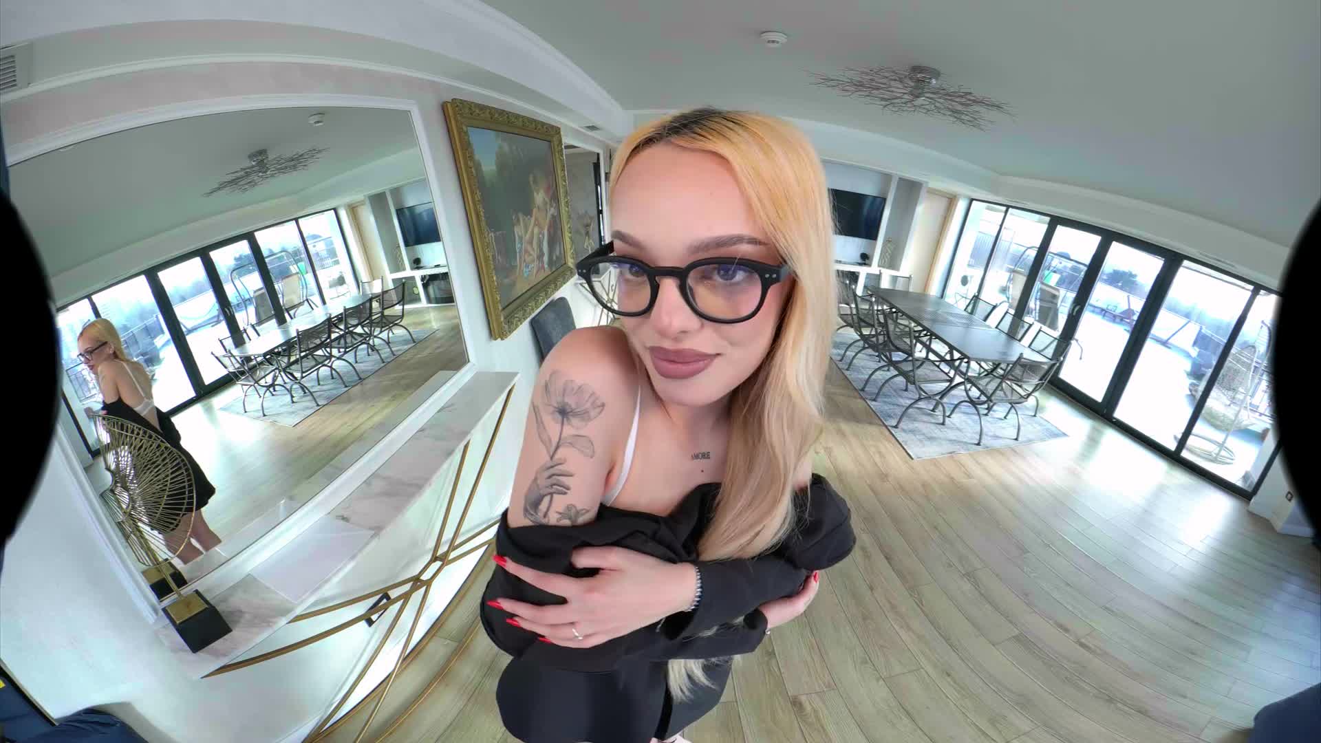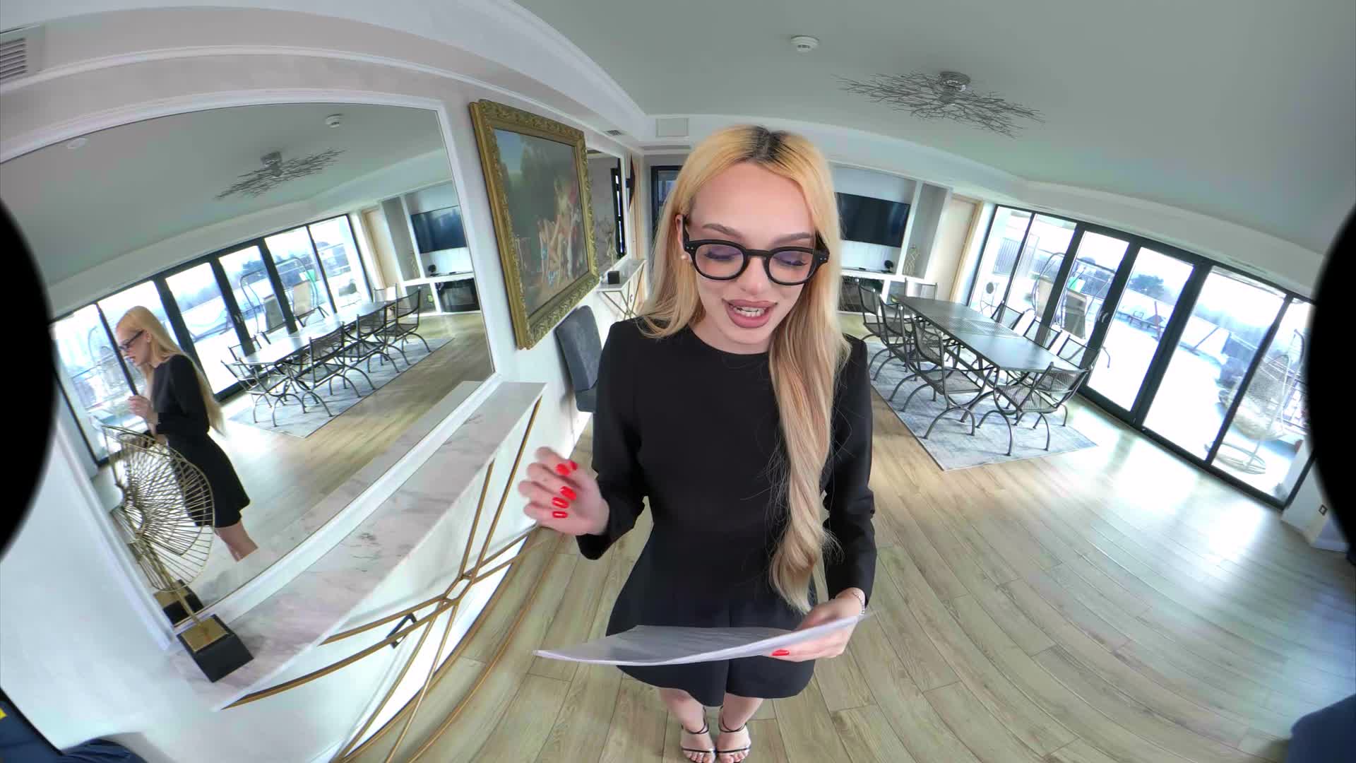 Luna wants to congratulate you for being such a good boss! Everything works perfectly, you work hard and she wants to make her boss happy. The signs were always there, but never so close - literally in your eyes. She kisses you, undresses, revealing her teen body with small tits and tattoos, then gets on her knees and sucks you off. Fuck her in doggystyle, missionary, cowgirl and reverse, then cum in her mouth. Your secretary is kind of dedicated to her work. You can call her your sex-cretary.