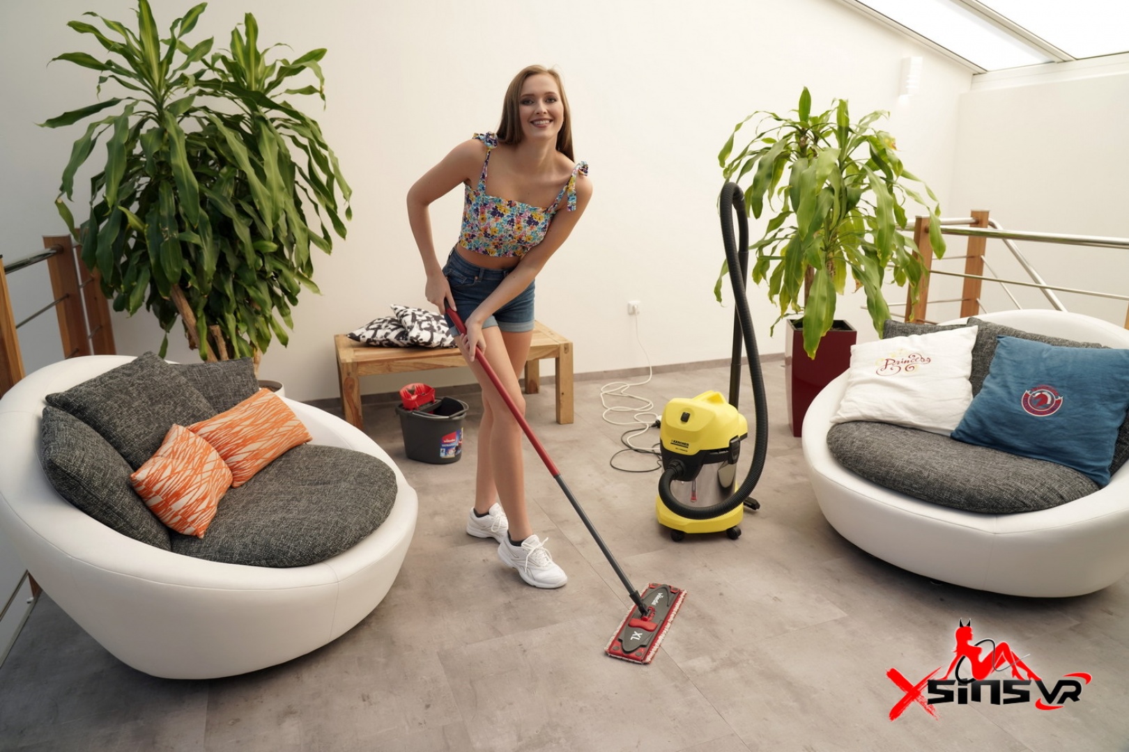 Your girl-friend Stacy Cruz is vaccuming up the verenda, and she is so pretty oozing sex-appeal, that you try to interrupt her from her house-wife tasks... of course, she pretends that she is busy cleaning the house, but she enters fast into the game that you offer her, and flashes her boobs, that her wet pussy, to increase the sexual tension in the room... Do not waist more time, grab your VR headset, and enjoy this perfect erotic intercourse with Miss Perfect Boobs, Stacy Cruz!