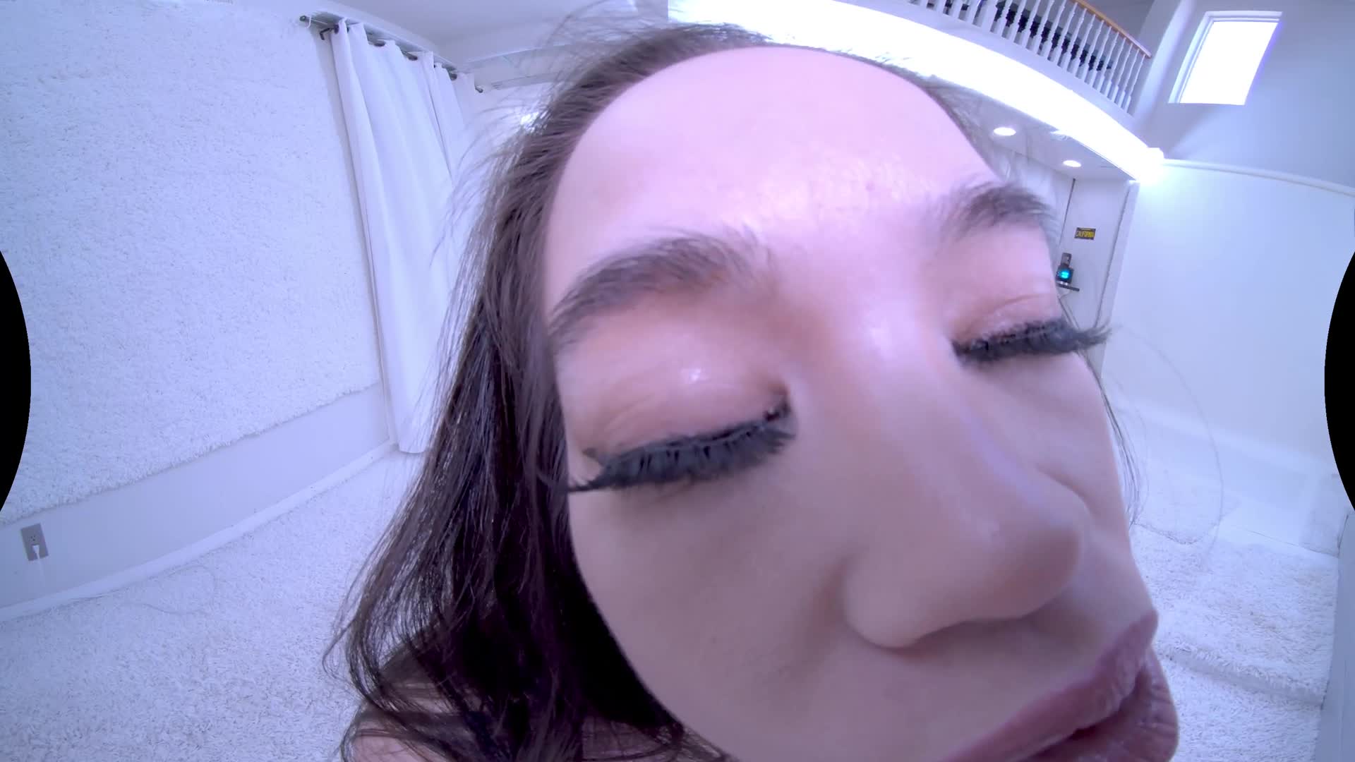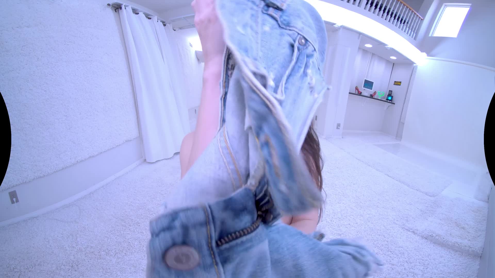 New Brunette Model strips in the white studio