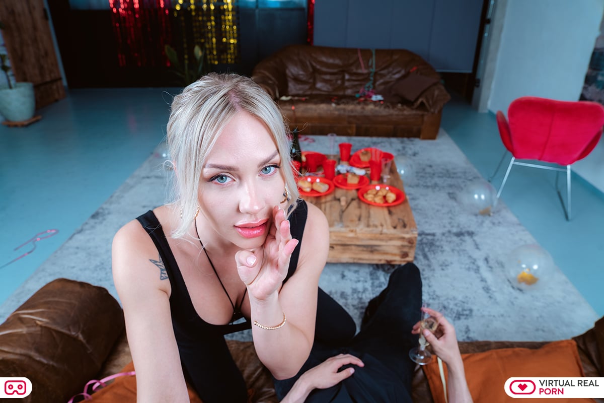 You and your girlfriend Angie Lynx held a party to celebrate the success in your work: you closed a very important deal! Now you are alone because the party is over, but you had a really great time with everybody there. You both are overjoyed and she gets close to you and whispers: “I want you to fuck me”. This turns you on and you get even hornier when she stands up in front of you and shows you her body. She gets undressed, showing you her boobs and she asks you to take of your trousers, because she is going to give you a blowjob and a titsjob. She also masturbates herself, sticking her fingers inside of her while she gives you a footjob. After that, you will fuck in different positions, like cowgirl, doggy, missionary, reverse cowgirl. This will allow you to watch her entire body because she is really hot! When you cum over her pussy, she will take some of your cum to taste it!