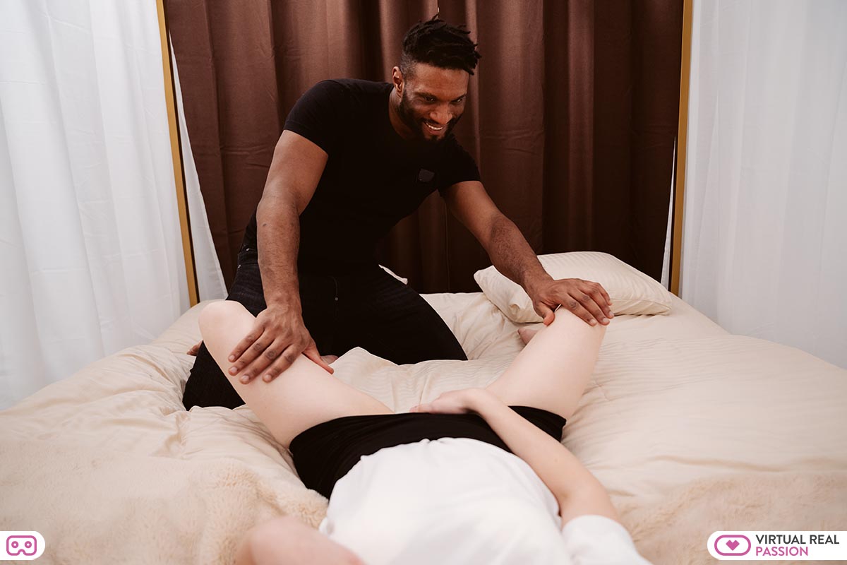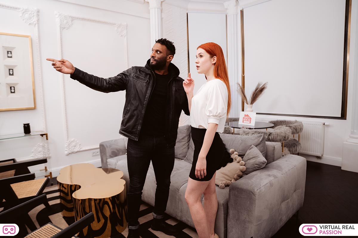 Yves Morgan is showing Kaira Love a house. She is asking some questions related to the comfort of the house she wants to buy. After speaking in the living room, Yves leads Kaira to the bedroom. She feels the good atmosphere there, and she wants to try if she feels even better there alone, so she asks him for five minutes there on her own. Once he leaves the room, Kaira sits down and starts masturbating. The place is amazing for that. She is moaning when Yves comes in the room and he offers her help to reach the orgasm she is hoping for. He lays her down in bed and starts giving her a pussy licking. Then, he fucks her with his big cock, slowly at first. But she wants to take the lead and fuck him, so she sits on top of him doing the cowgirl. Both will come after doing different sex positions.