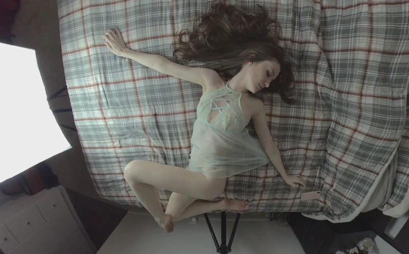 Emily Bloom is in the flesh and showing off for the overhead camera in this exciting and sensual 3D porn, voyeur scene. Come check out her perfect young body as she plays on the bed and strips out of her lingerie in a hot little solo scene that's gonna' make you crave diving right into that bed with her.